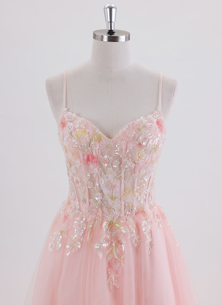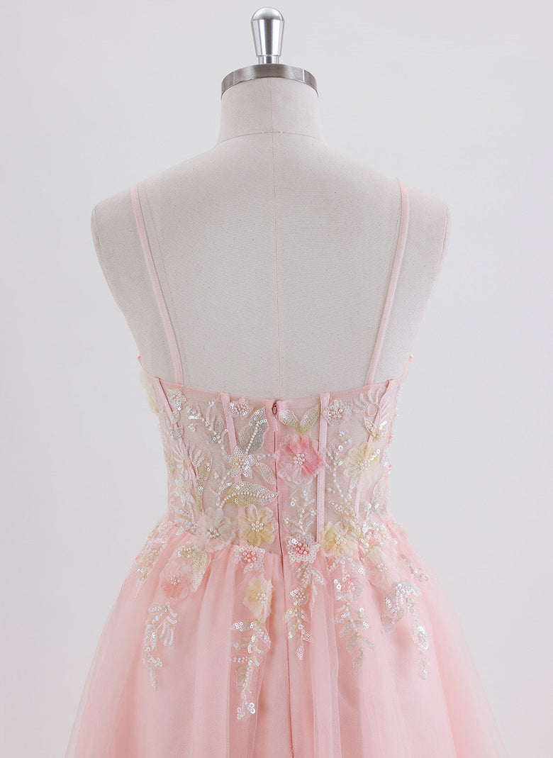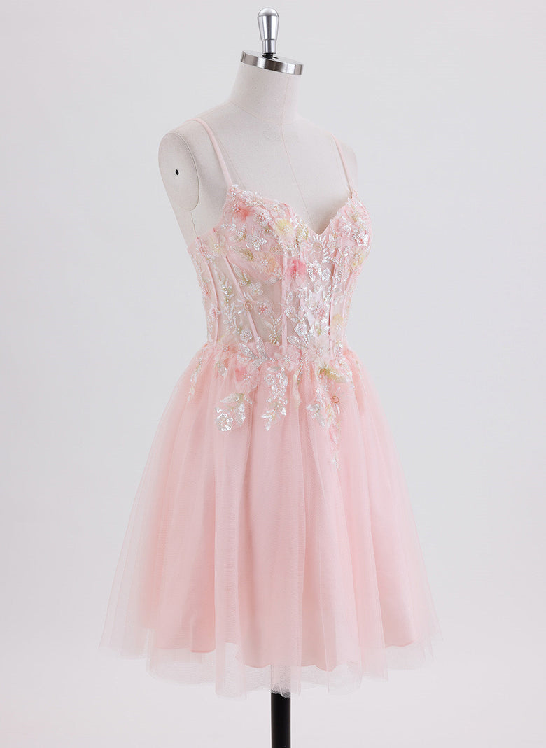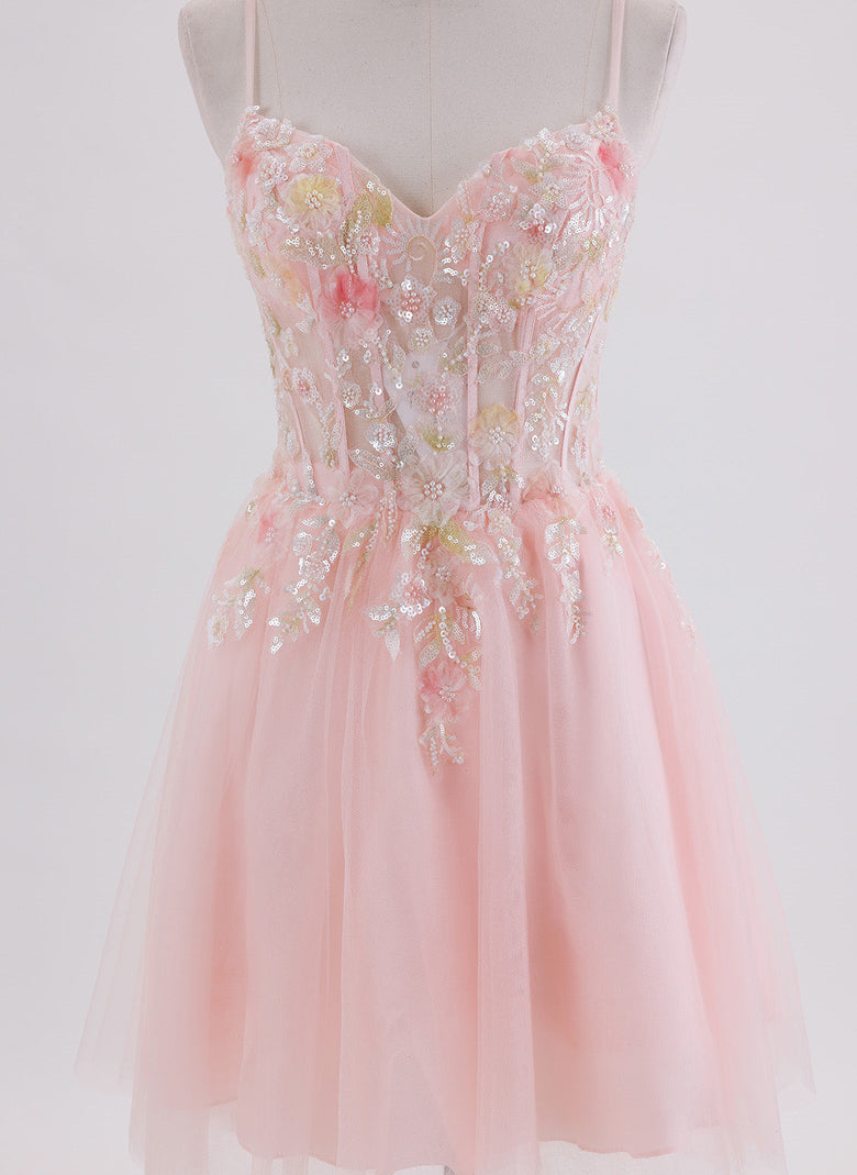 This A-line short homecoming dress features delicate tulle fabric adorned with shimmering sequins and intricate beading, creating an elegant and eye-catching look. The V-neckline and spaghetti straps enhance its feminine silhouette, offering both style and comfort for your special event. Perfect for making a memorable entrance, this dress combines classic design with sparkling details to elevate your homecoming experience.