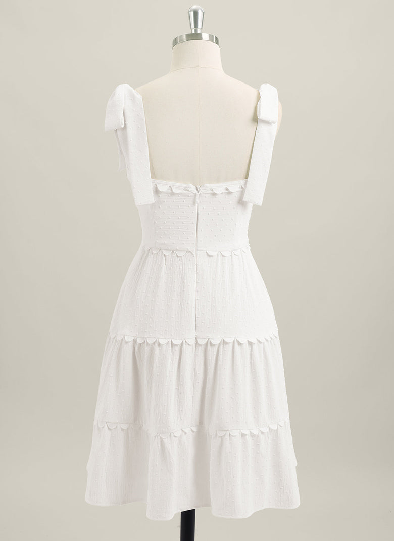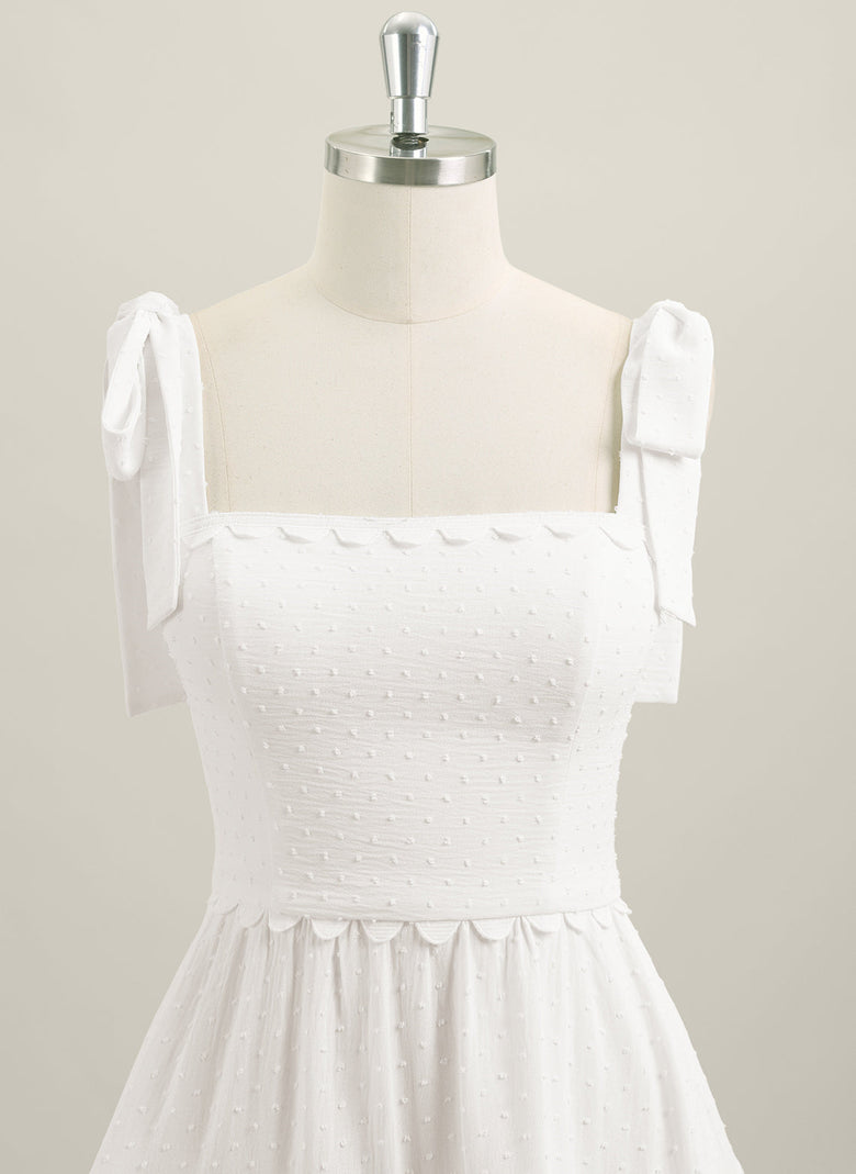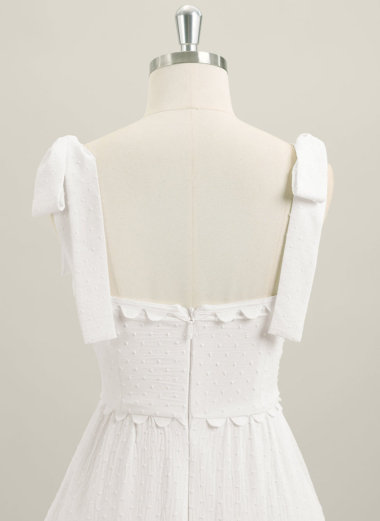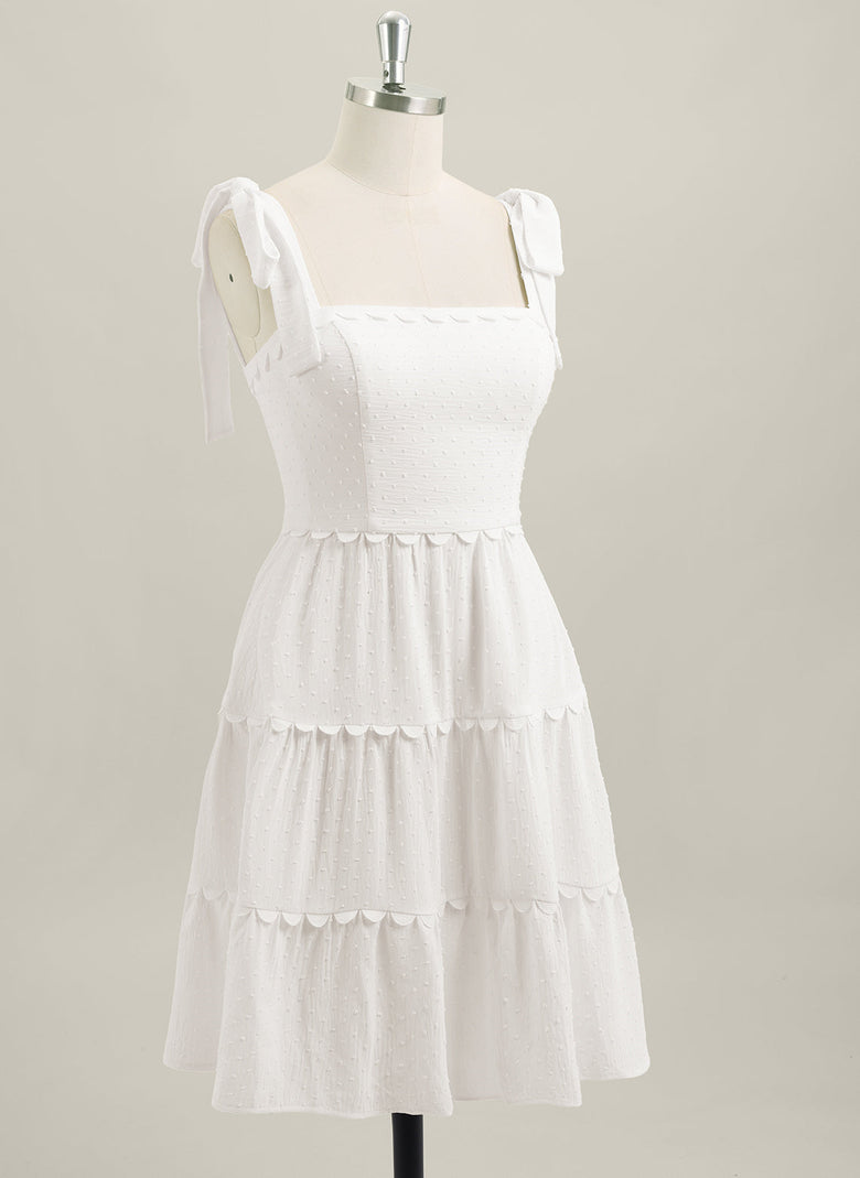 This A-line sleeveless short homecoming dress features a flattering square neckline and delicate bow tie details on the shoulders. Its silhouette enhances the waist while allowing ease of movement, making it an elegant yet comfortable choice for memorable evenings. The design combines classic structure with feminine accents, perfect for standing out at any homecoming event.