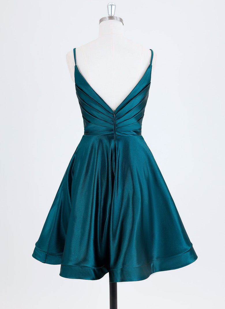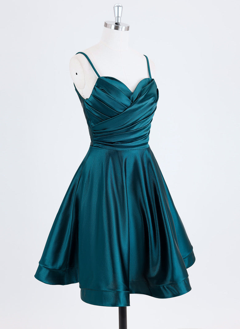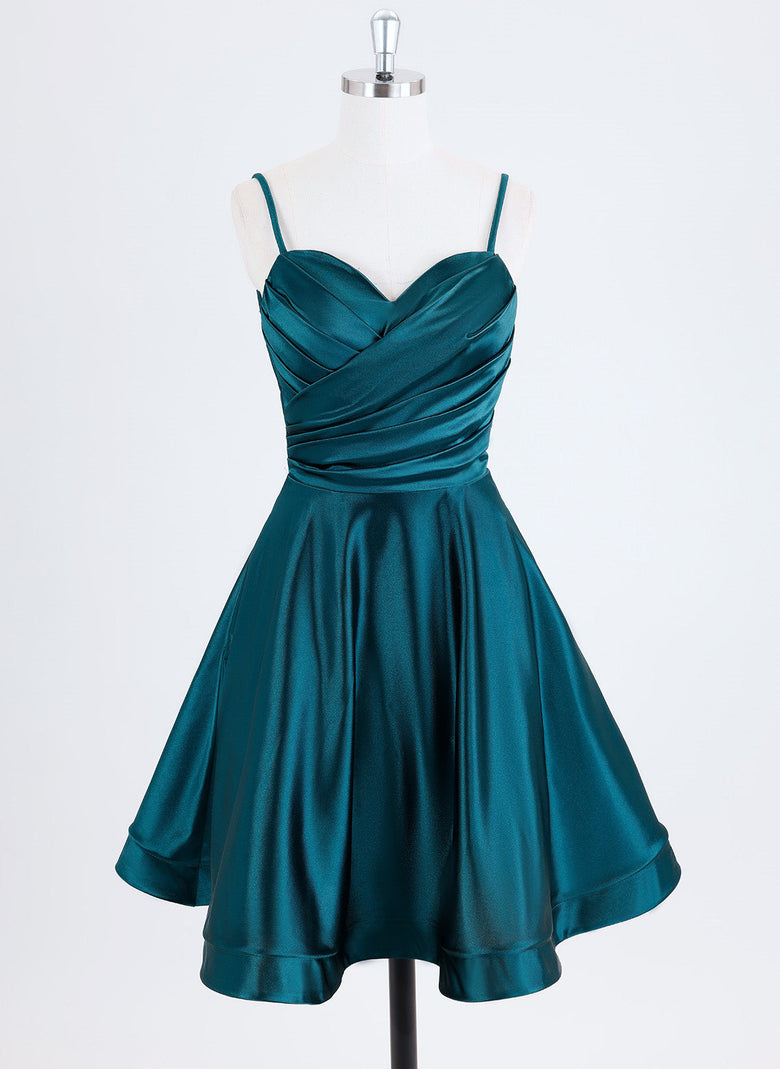 A-line Spaghetti Straps Short Satin Homecoming Dress With Pleated
