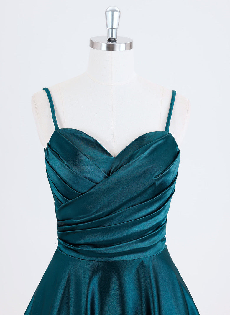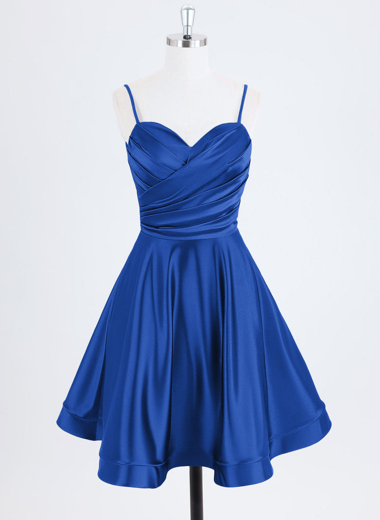 A-line Spaghetti Straps Short Satin Homecoming Dress With Pleated
