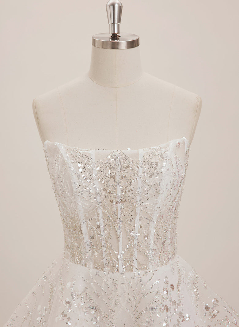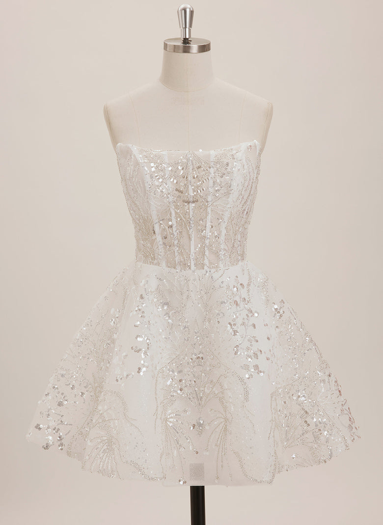 This A-line Straight Short Tulle Mini Dress is adorned with delicate beading and sequins, adding a touch of glamour to its classic silhouette. Made with high-quality tulle, this dress is both comfortable and stylish, making it a perfect choice for any special occasion.
