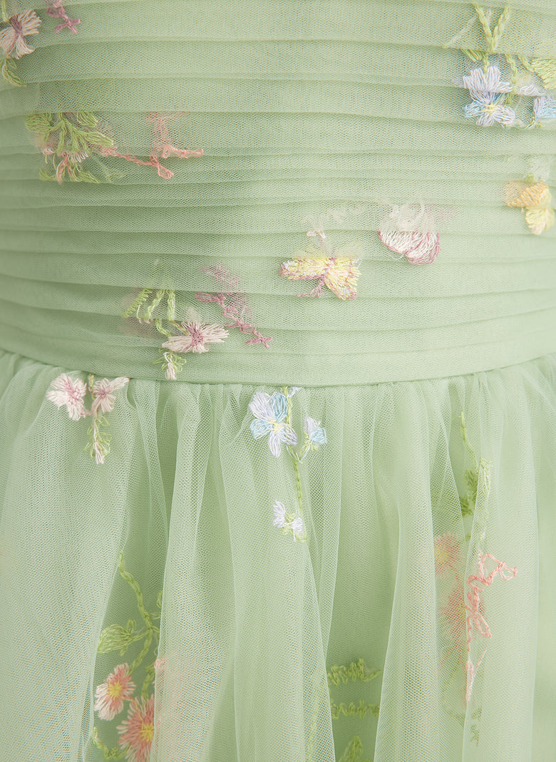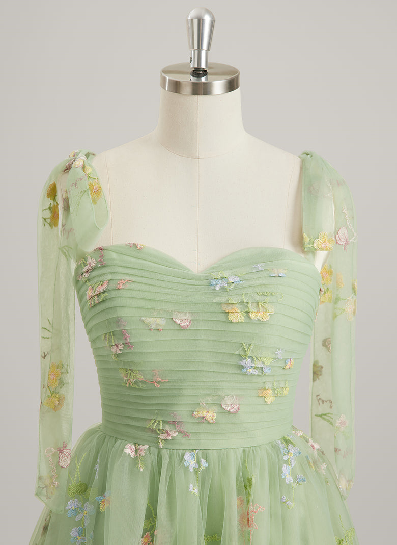Sleeveless Sweetheart Sweet & Flow Print & Floral Skater Dresses Coquette Bow Pleated Appliques Lace Tulle A-line Maxi Dress With No Leg Slit