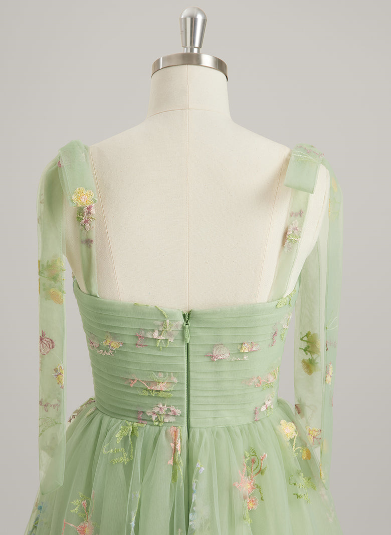 Sleeveless Sweetheart Sweet & Flow Print & Floral Skater Dresses Coquette Bow Pleated Appliques Lace Tulle A-line Maxi Dress With No Leg Slit