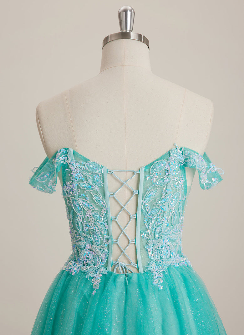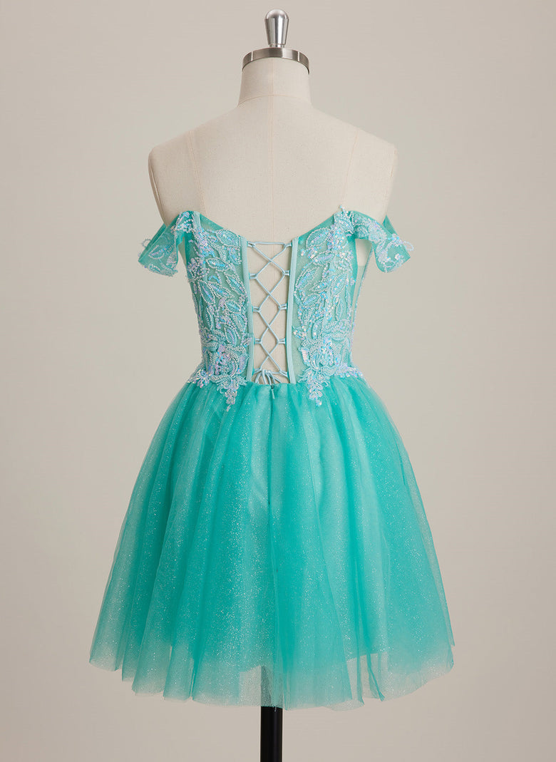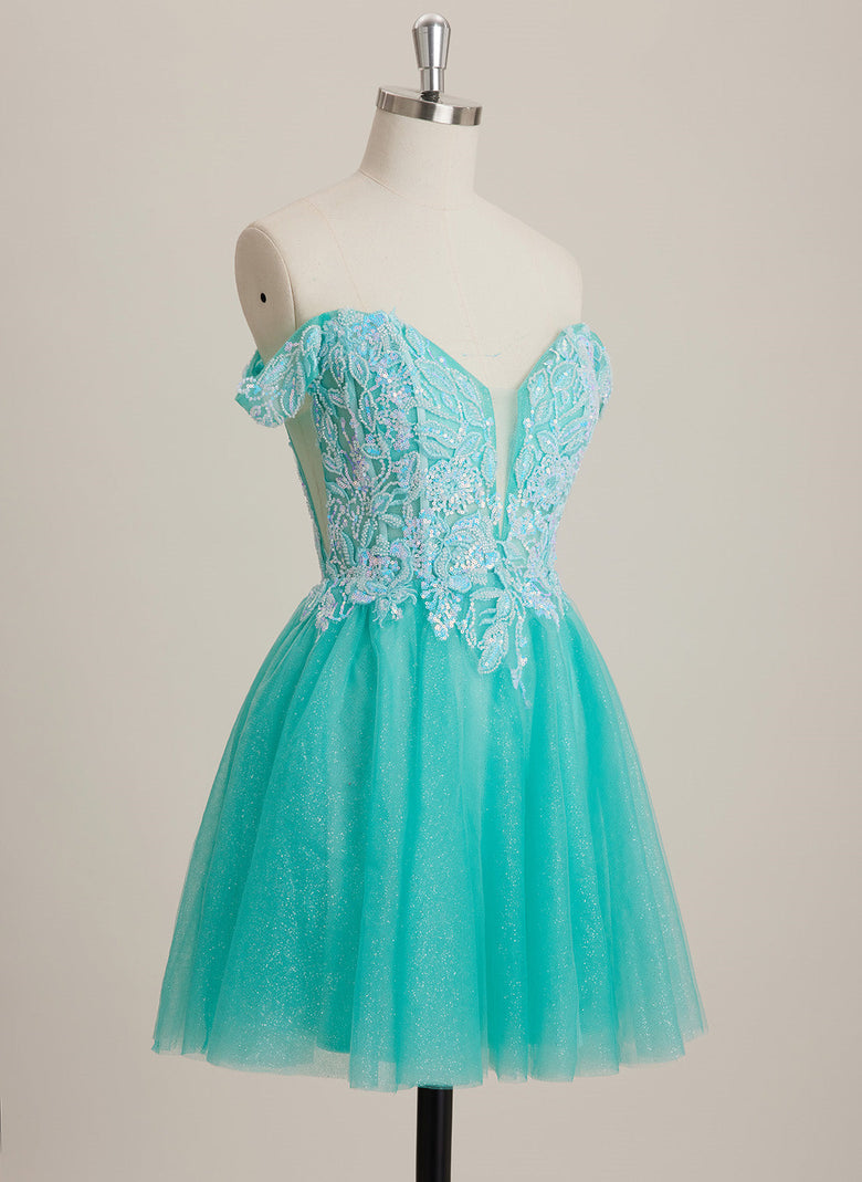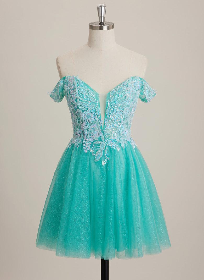 Expertly crafted with an A-line silhouette, this short tulle mini dress features a flattering V-neckline and intricate beading, sequins, and lace appliques. Perfect for special occasions, this dress combines elegance and modern style for a stunning look.