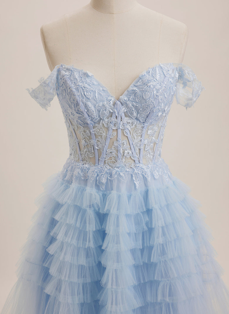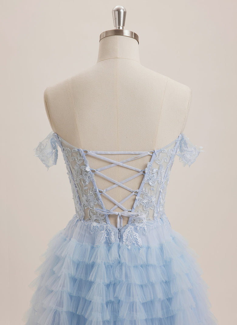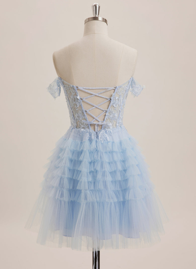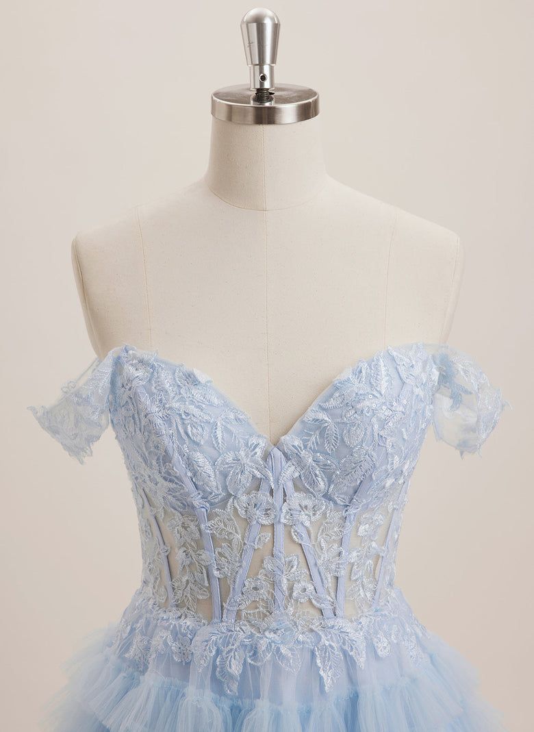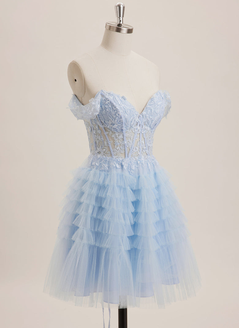Expertly crafted, this Ball-Gown/Princess dress features an off-the-shoulder neckline and delicate sequin appliques lace on a tulle mini skirt. This dress exudes elegance and femininity, perfect for any formal occasion. Made with high-quality materials, it is comfortable and stylish, making you feel confident and beautiful.