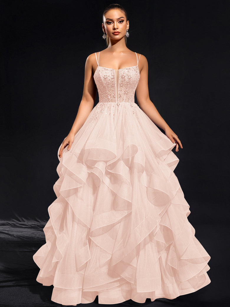 Elevate your evening look with our Ball-Gown/Princess Scoop Floor-Length Tulle Maxi Dress. Its elegant scoop neckline and flowing ball-gown silhouette will make you feel like a modern-day princess. The intricate rhinestone beading adds just the right amount of sparkle to this enchanting dress. Perfect for any formal occasion.