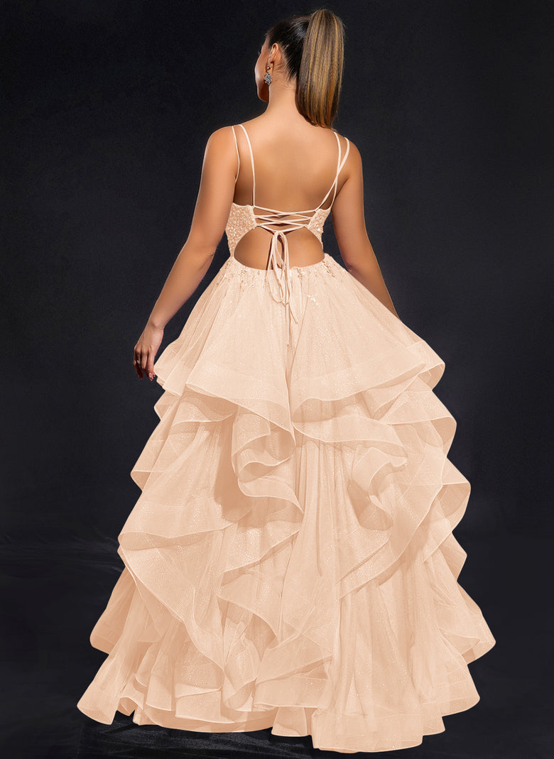 Elevate your evening look with our Ball-Gown/Princess Scoop Floor-Length Tulle Maxi Dress. Its elegant scoop neckline and flowing ball-gown silhouette will make you feel like a modern-day princess. The intricate rhinestone beading adds just the right amount of sparkle to this enchanting dress. Perfect for any formal occasion.