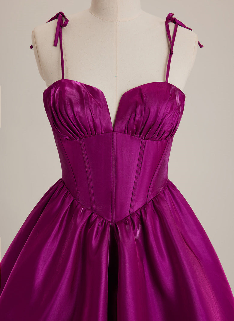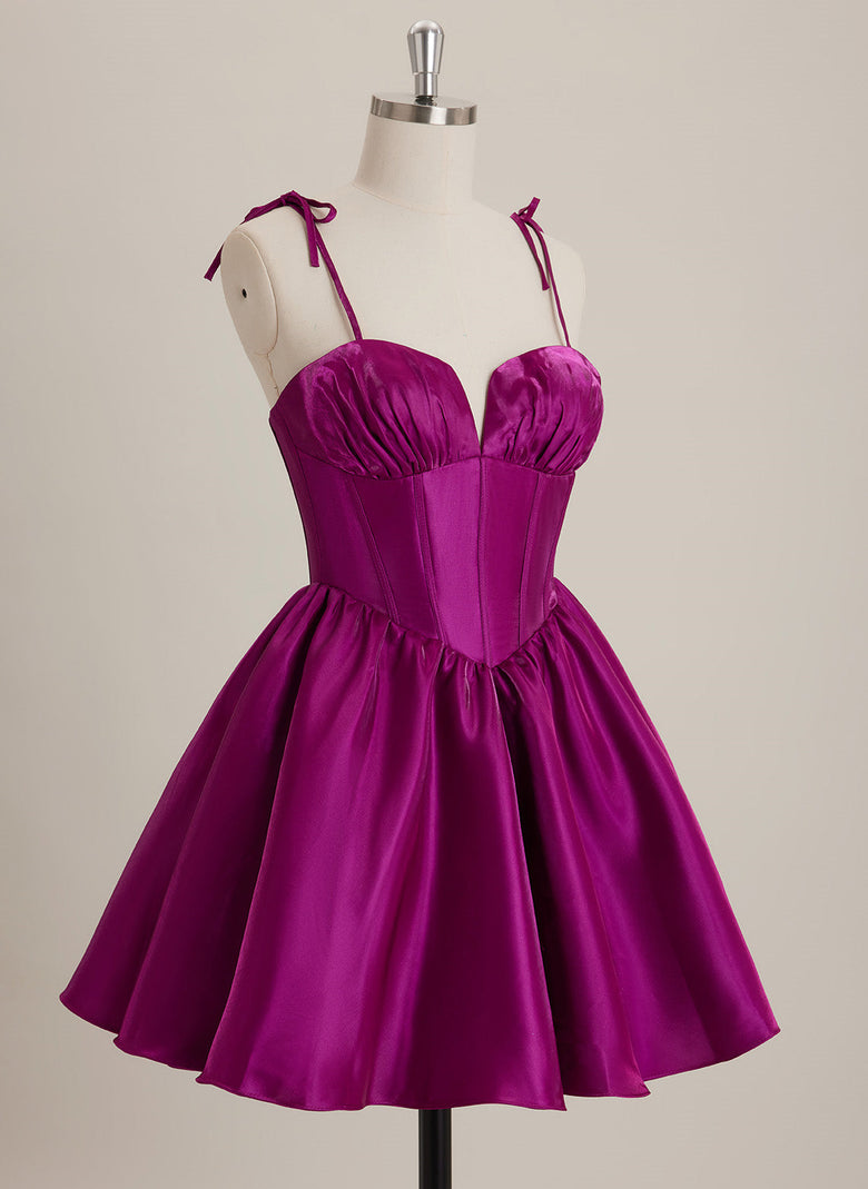 Discover elegance and sophistication with our Ball-Gown/Princess Short Satin Mini Dress. Made with luxurious pleated satin, this dress effortlessly drape over your figure for a flattering silhouette. Perfect for any special occasion, this dress will make you feel like royalty.