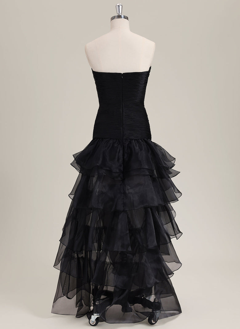 This sleeveless ball-gown prom dress features a floor-length organza skirt that creates a graceful, princess-like silhouette. The delicate ruffle tails add a touch of elegance and movement, making it an ideal choice for formal occasions. Crafted to combine classic charm with modern sophistication, this dress ensures you stand out with refined style and comfort throughout your event.