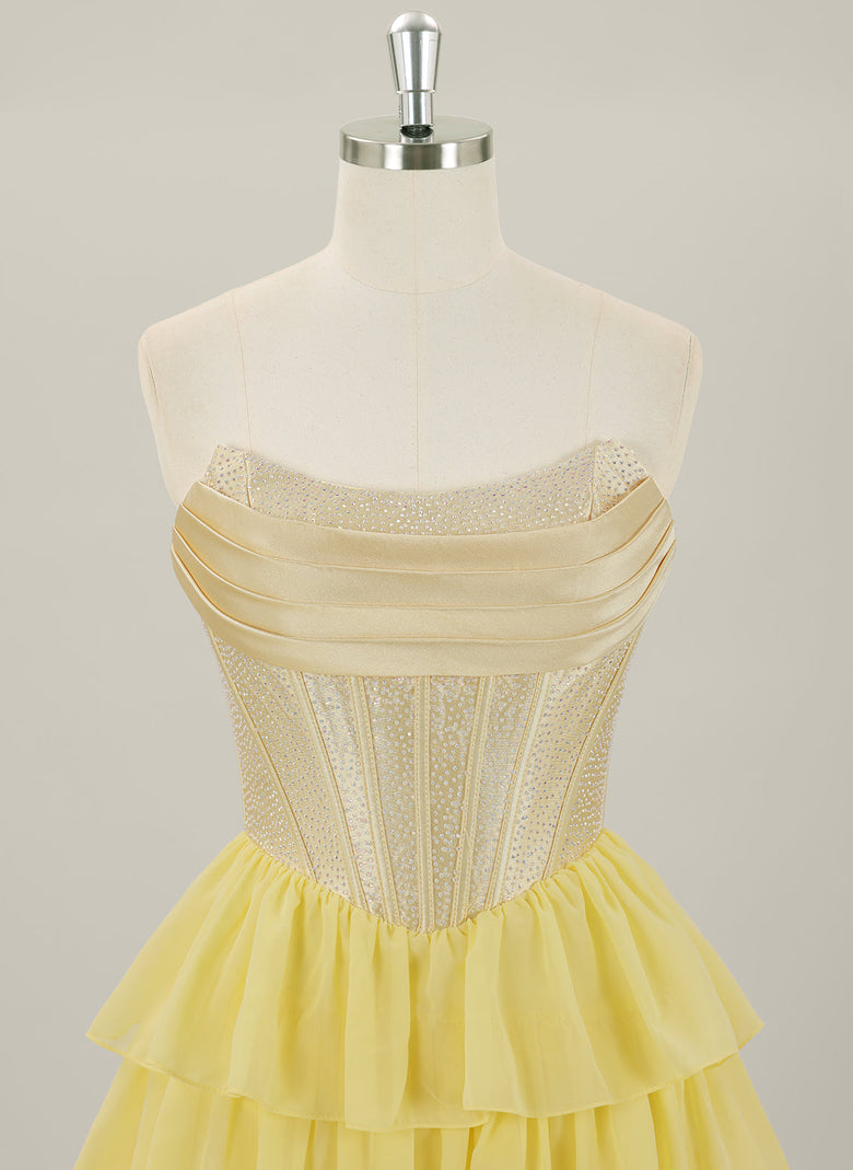 This sleeveless chiffon homecoming dress features a graceful ball-gown silhouette with delicate ruffles that add dimension and movement. Its pleated neckline enhances sophistication, while rhinestone embroidery provides a subtle, elegant sparkle. Designed for comfort and style, this short dress is ideal for making a refined statement at any special event.