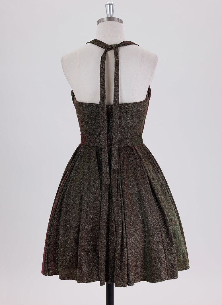 The metallic finish and pleated skirt catch the light beautifully, though the fabric feels a bit stiff at first.
