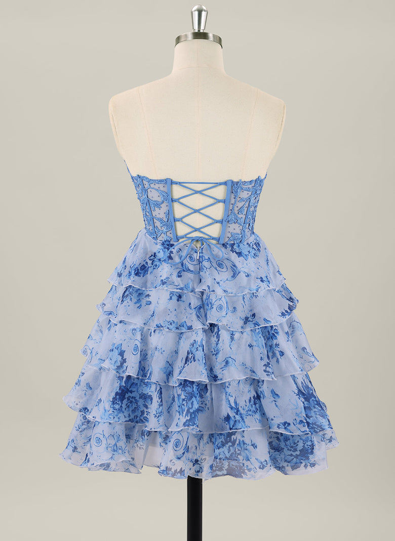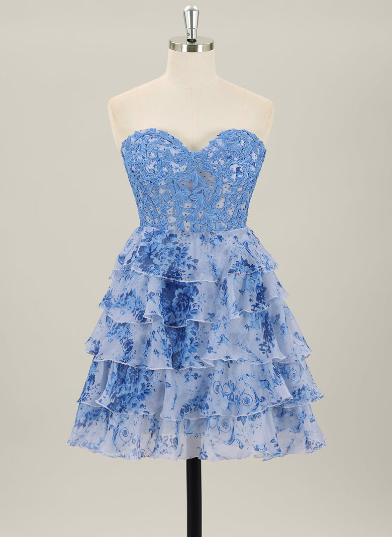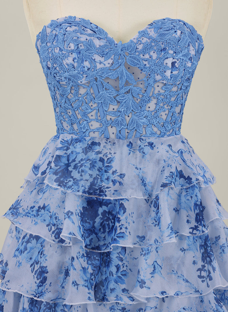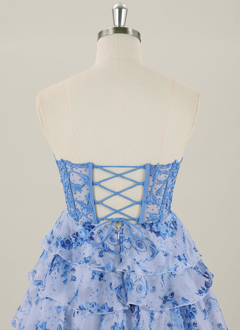 This elegant sleeveless homecoming dress features a delicate lace bodice that enhances its princess-style silhouette. Crafted with lightweight organza, the short skirt is adorned with graceful ruffles and an eye-catching ruffle tail, adding volume and movement. Perfectly tailored for comfort and style, this ball gown-inspired dress combines classic charm with a modern, youthful approach to formalwear. Ideal for homecoming events, it offers a refined look that stands out with intricate details and sophisticated design.