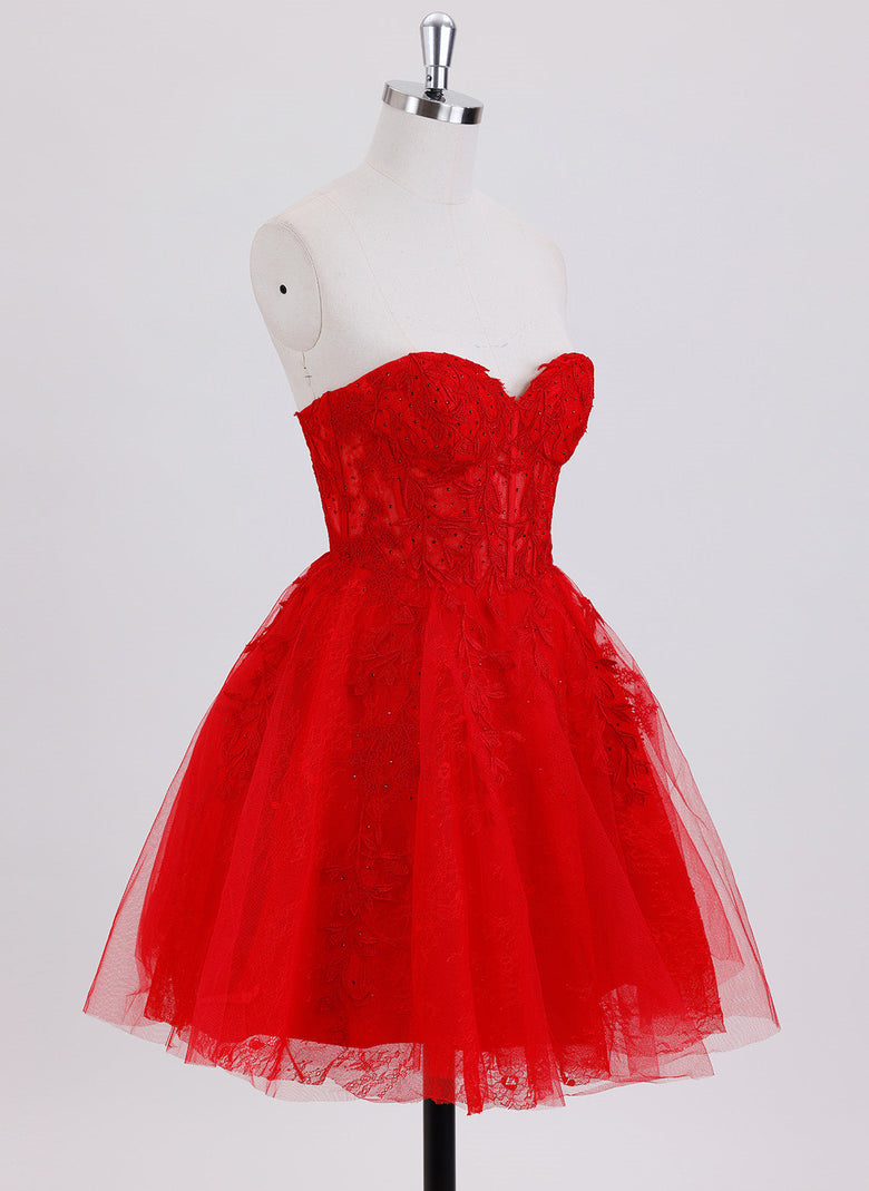 This sleeveless short tulle homecoming dress features a classic ball-gown silhouette with delicate appliques that add refined texture and elegance. The sweetheart neckline and crossed straps enhance the fit and provide graceful support, making it an ideal choice for a memorable evening. Crafted to combine comfort with a princess-inspired style, this dress offers both sophistication and youthful charm.