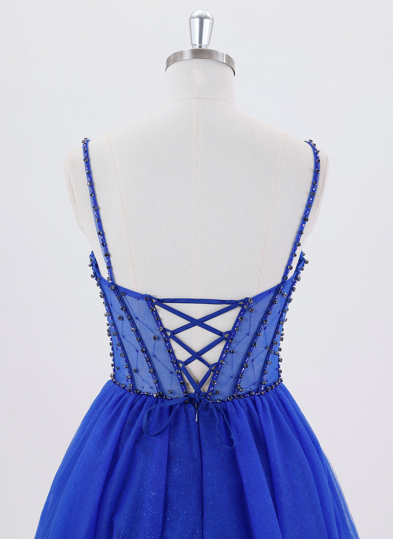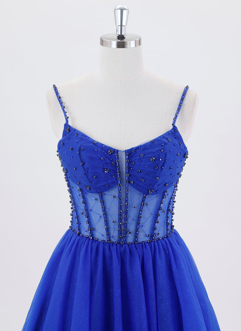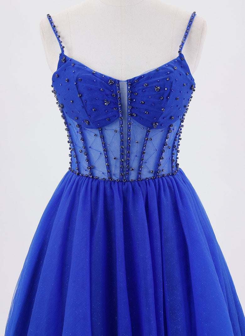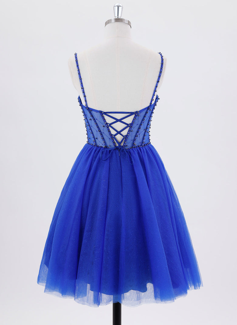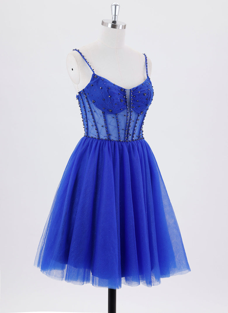 This elegant short homecoming dress features a classic ball-gown silhouette crafted from delicate tulle, enhanced with shimmering sequins for a subtle sparkle. The princess-style design is complemented by slender spaghetti straps, offering a refined and graceful look. Ideal for special occasions, this dress combines timeless charm with modern sophistication, ensuring comfort and style throughout your event.