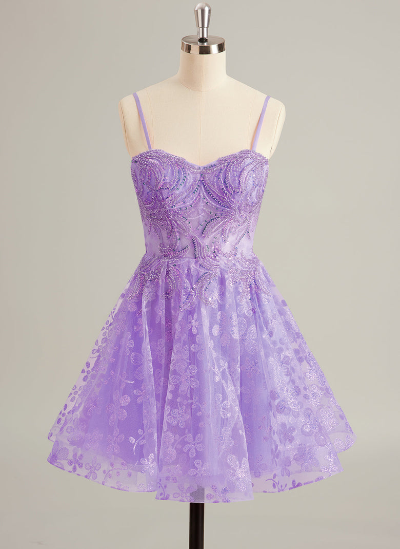 Ball-Gown/Princess Sweetheart Short/Mini Tulle Prom Dresses With Beading Sequins