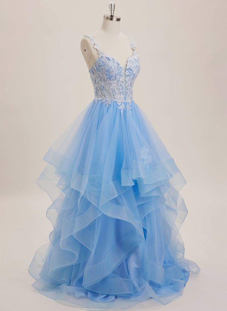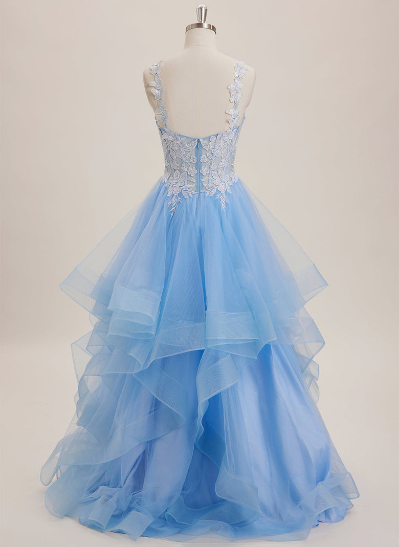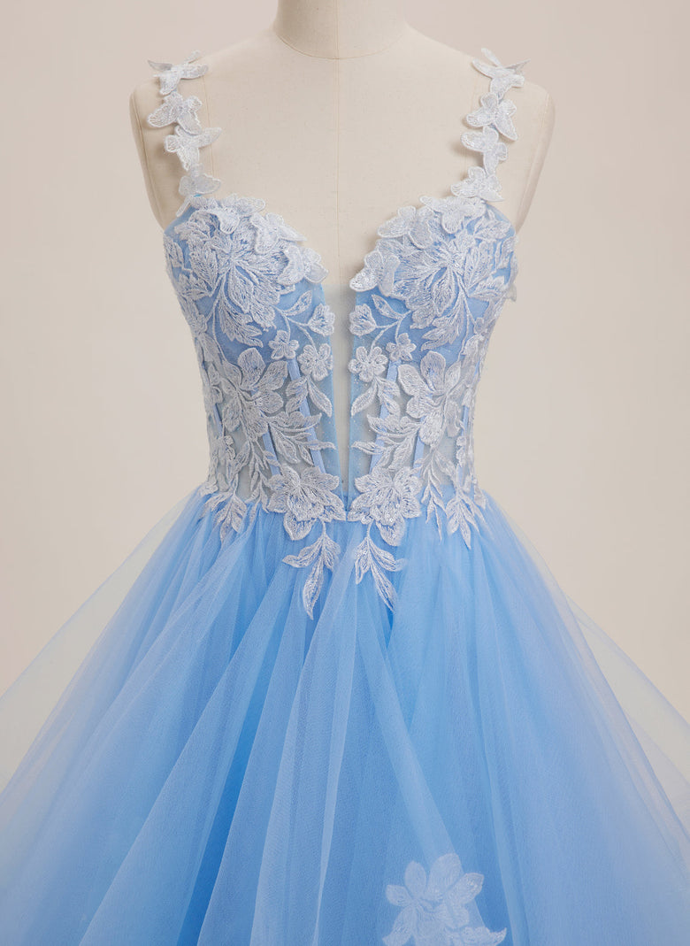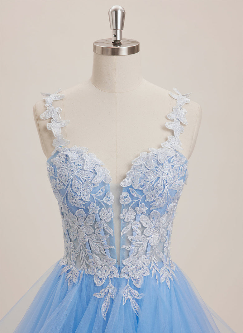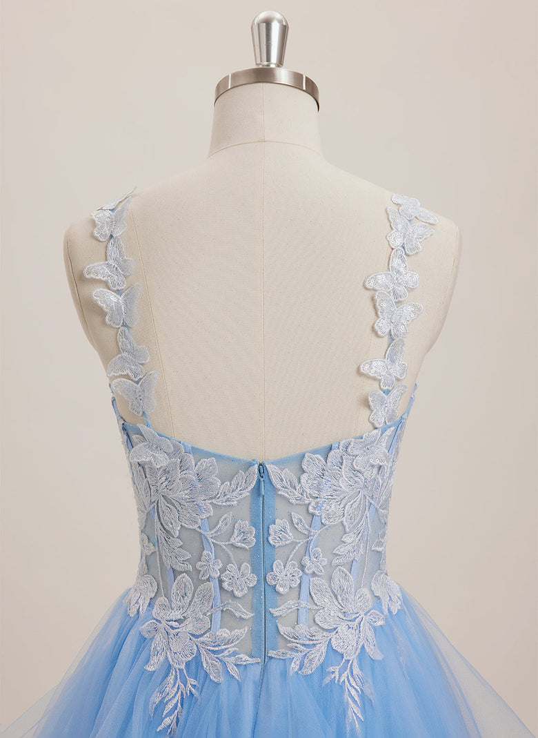 This elegant ball gown style dress features a sweetheart neckline with delicate lace appliques and a sweeping train. Made with high-quality tulle fabric, this dress is perfect for formal events and special occasions. The princess silhouette flatters all body types, making you feel like royalty.