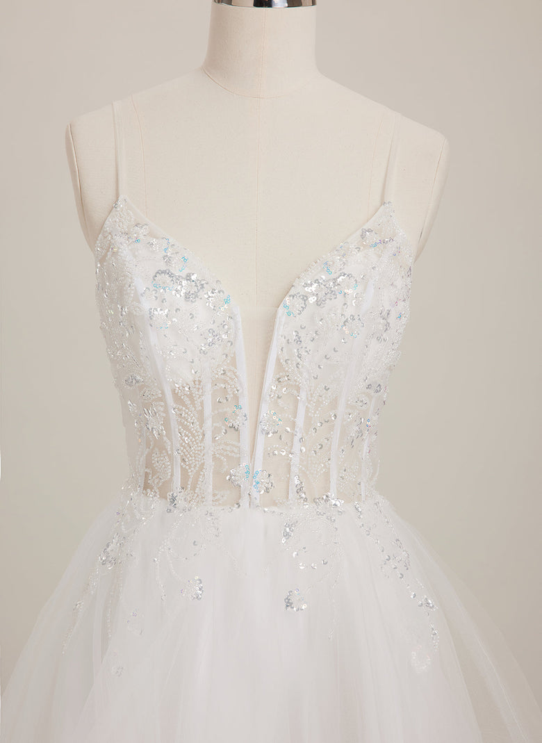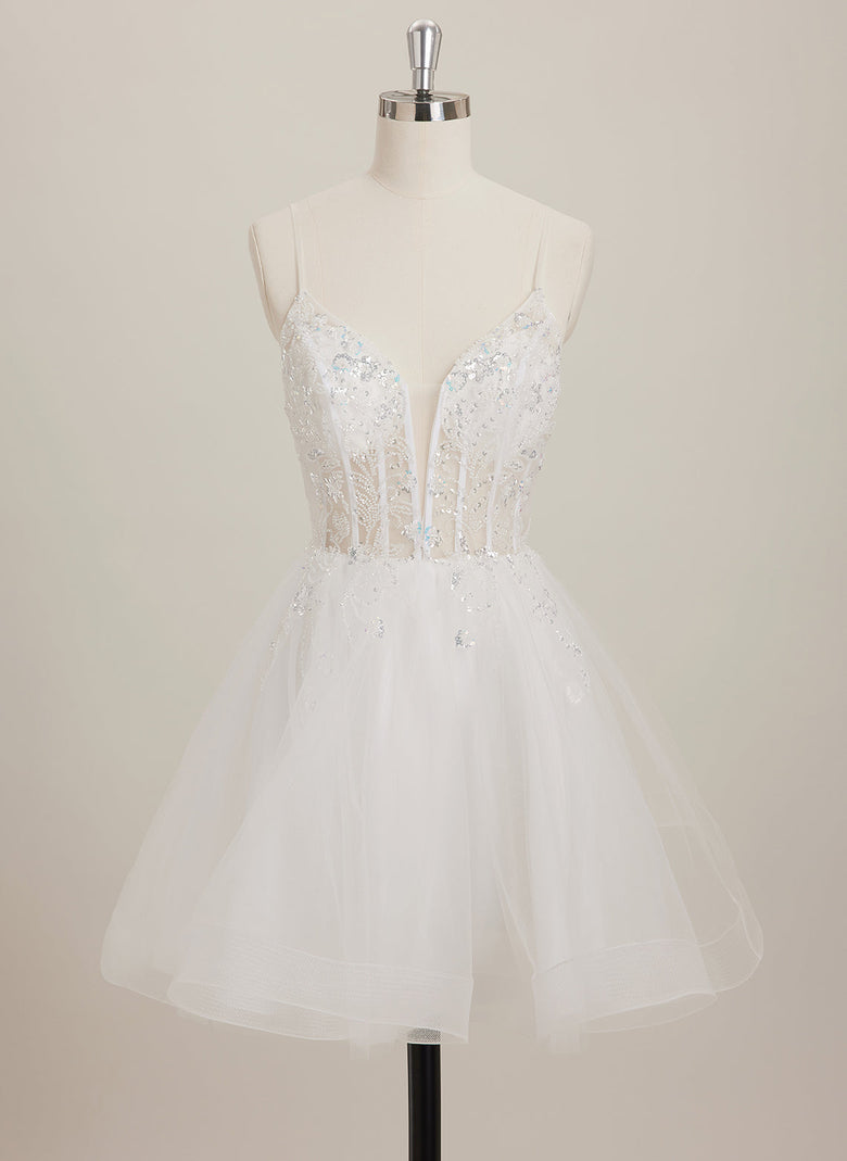 Ball-Gown/Princess V-Neck Short Tulle Mini Dress With Beading Sequins