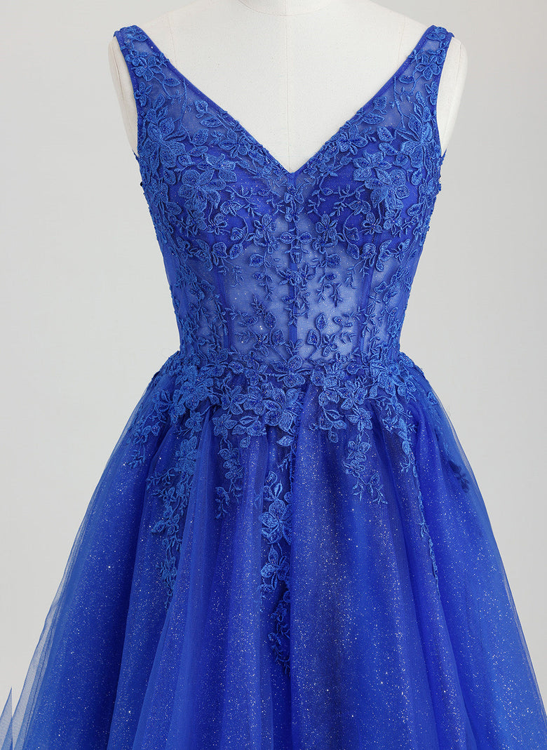 This Ball-Gown/Princess V-Neck Short Tulle Homecoming Dress features a flattering V-neckline and a voluminous tulle skirt that creates a classic princess silhouette. Delicate lace appliques adorn the bodice, adding intricate texture and elegance. The short length offers comfort and ease of movement, making it an ideal choice for homecoming events where timeless style meets youthful grace.