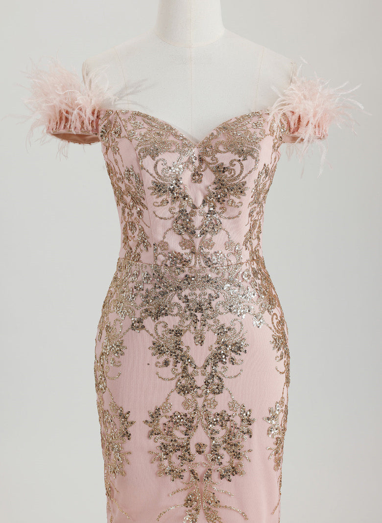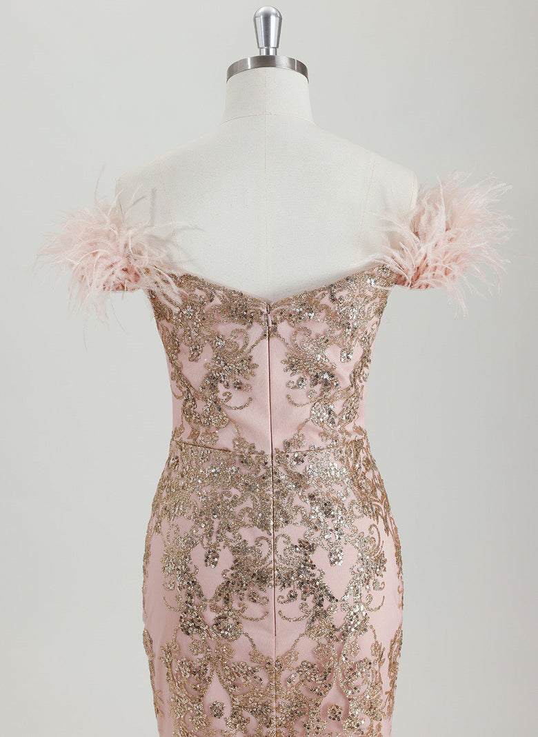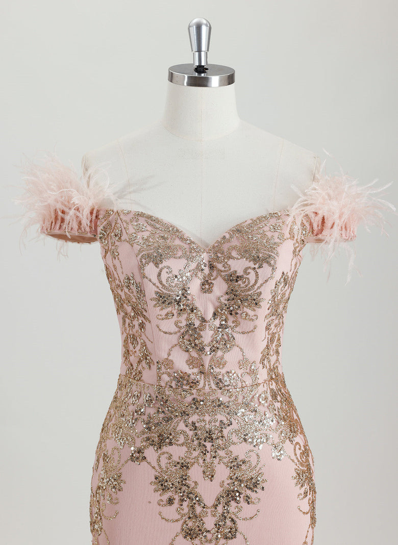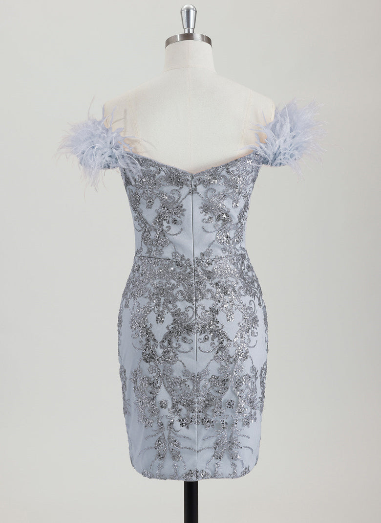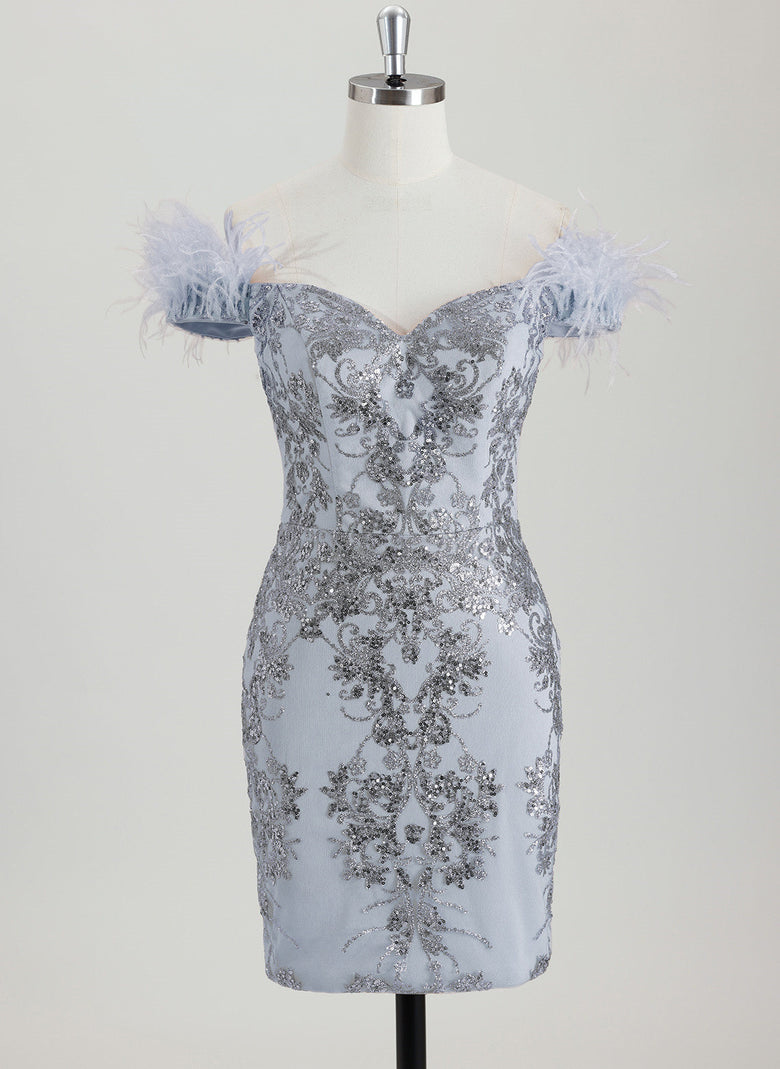 Bodycon Off the Shoulder Short Sequin Homecoming Dress With Faux Feather Sequins