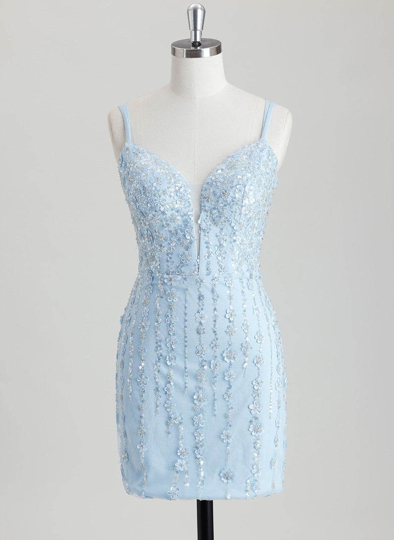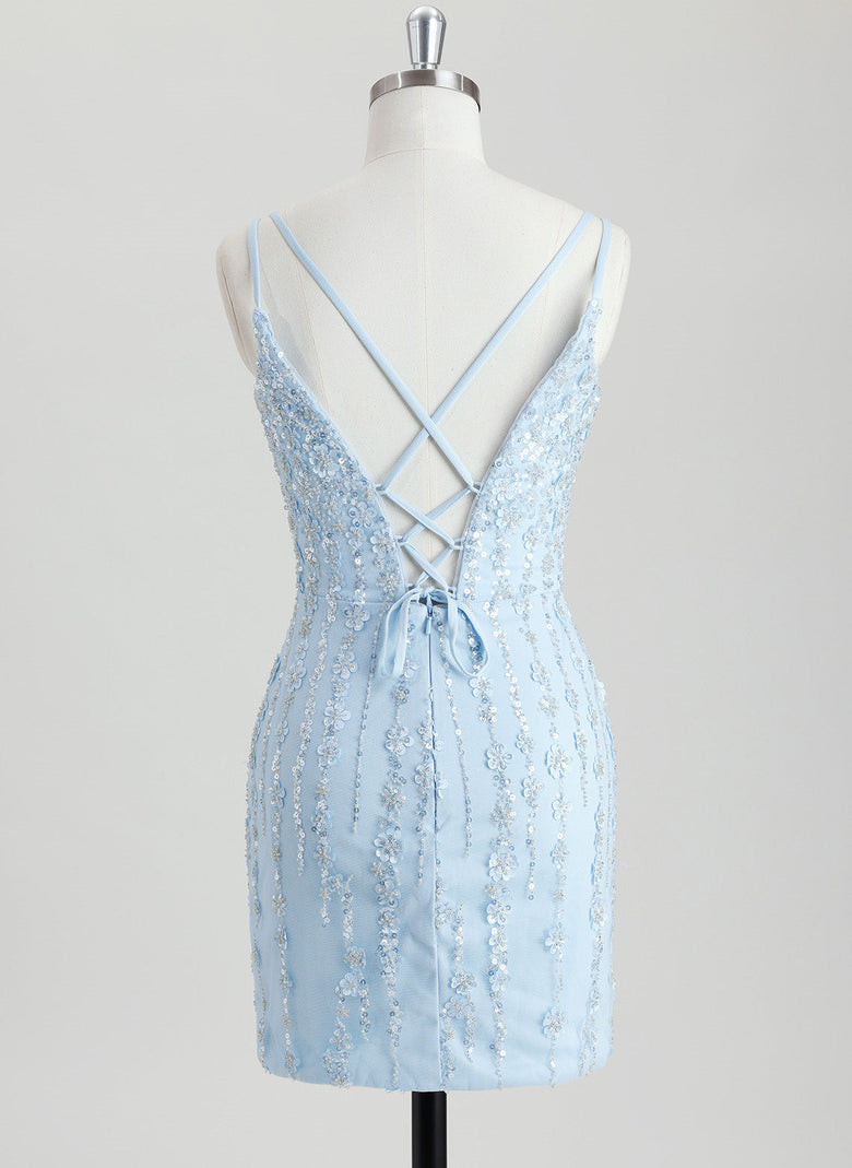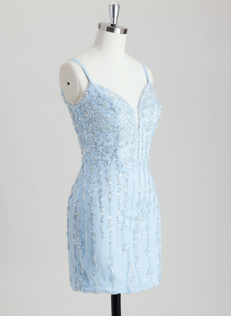 This Bodycon V-Neck Short Sequin Homecoming Dress features a sleek, curve-enhancing silhouette with a flattering V-neckline. Intricate beading and sequins embellish the dress, creating a dazzling, light-reflecting effect. Its short length ensures comfort and freedom of movement, making it a sophisticated and glamorous choice for homecoming events.