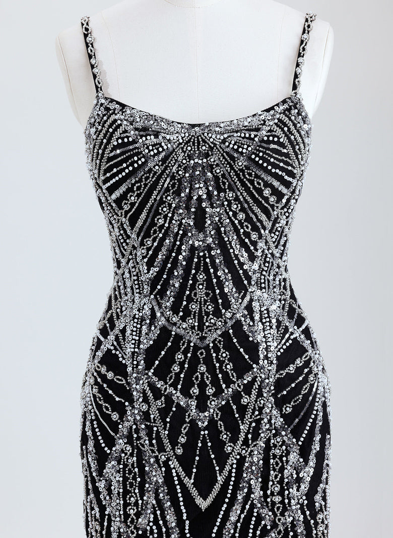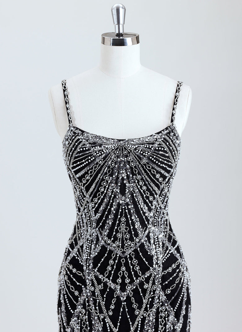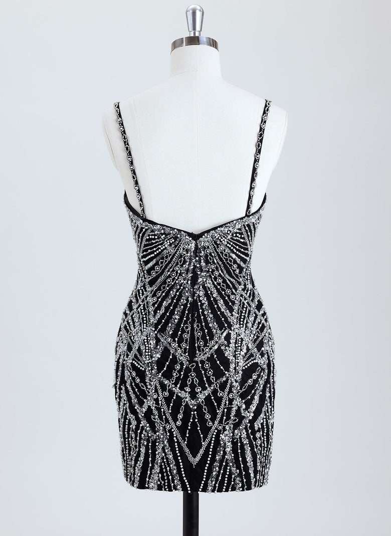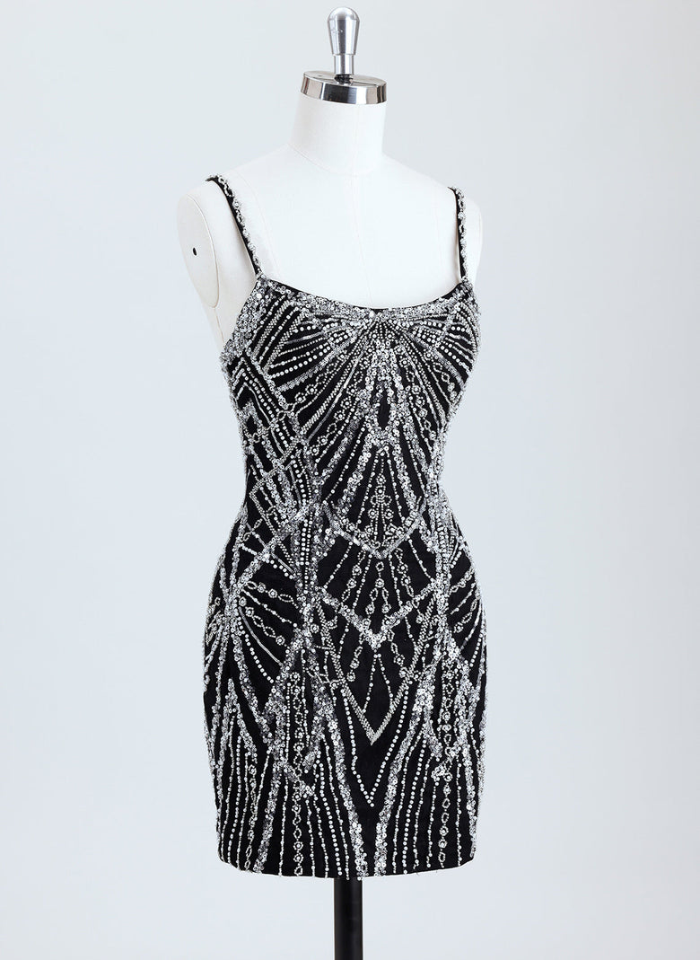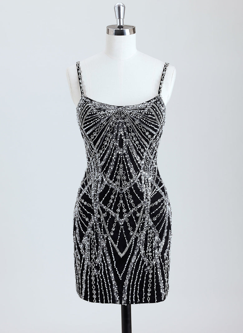 This sheath-style homecoming dress features a flattering scoop neckline and a short, column silhouette that elegantly contours the body. Adorned with intricate beading and shimmering sequins, it offers a sophisticated sparkle that catches the light beautifully. Designed for a confident and polished look, this dress is perfect for making a memorable impression at any special occasion.