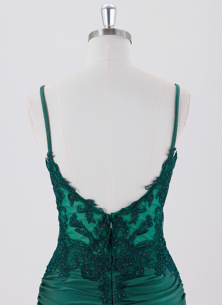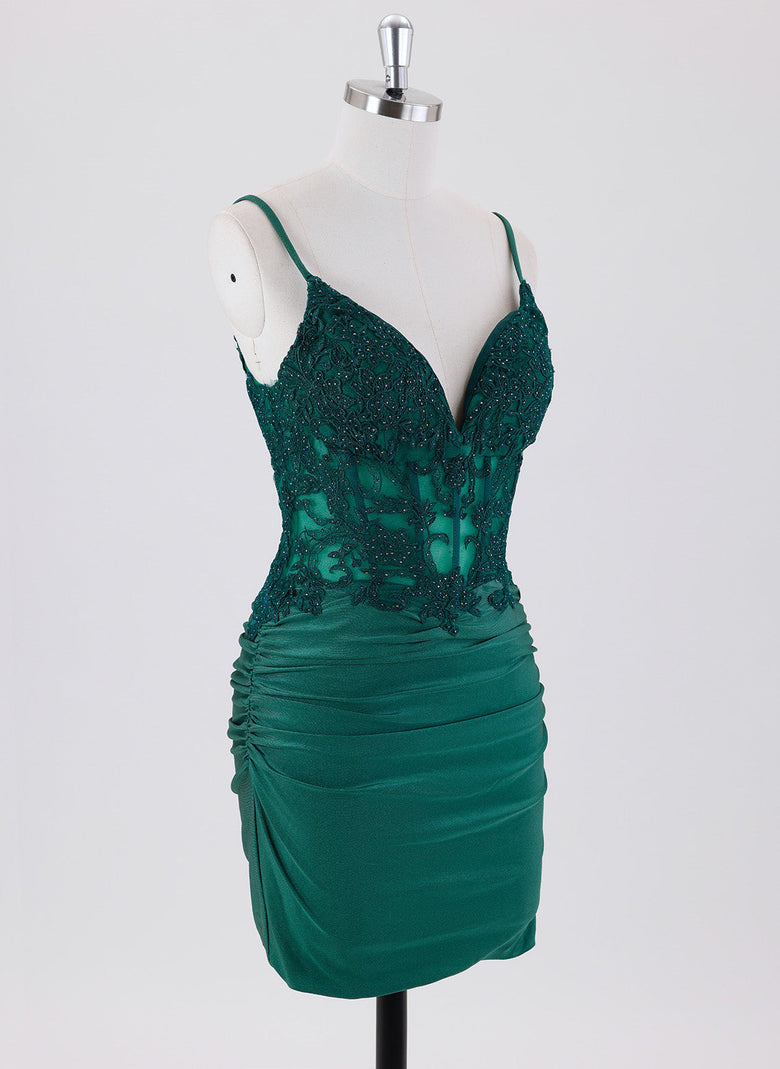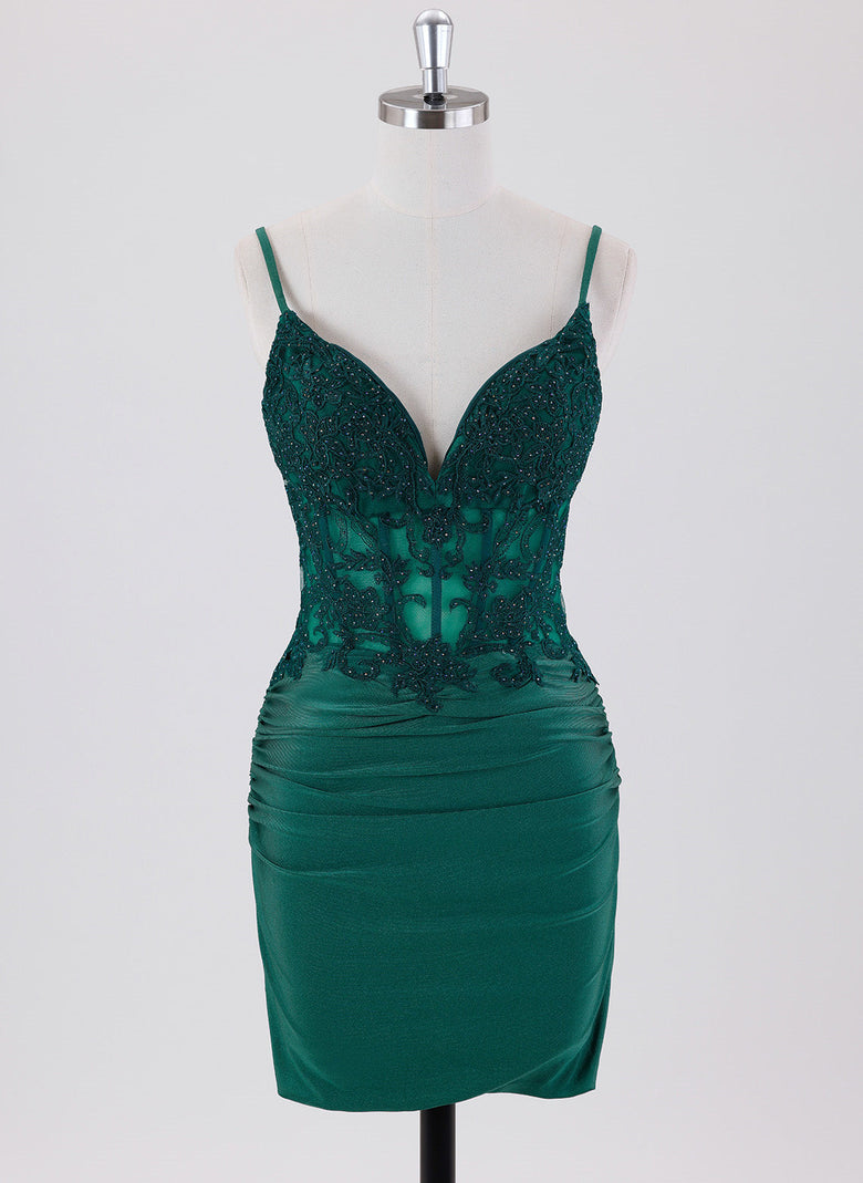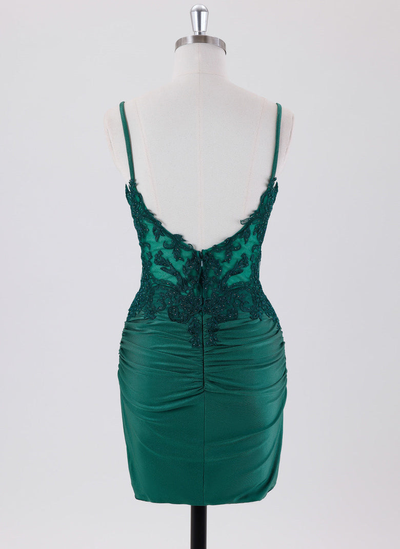 This sheath column short homecoming dress combines the smooth comfort of jersey fabric with delicate appliques lace detailing, creating a refined yet youthful look. Its tailored silhouette flatters the figure while the intricate lace accents add elegance and texture. Perfect for special occasions, this dress offers both style and ease, ensuring you stand out with sophistication and grace.