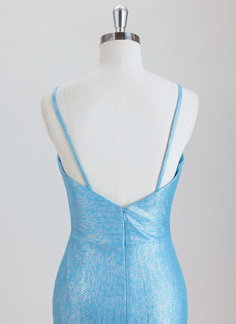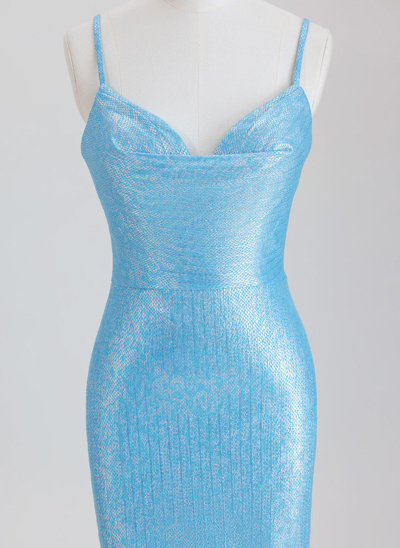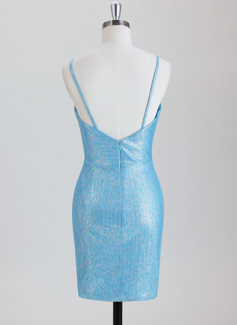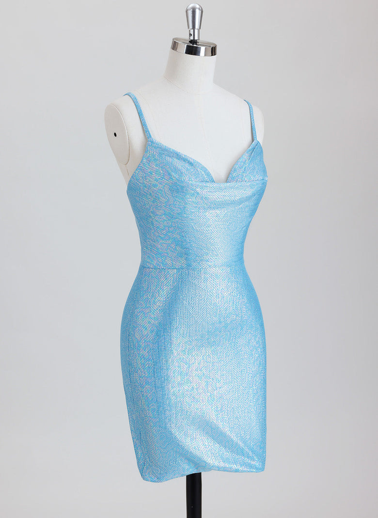 This sheath column short homecoming dress features a sophisticated metallic fabric that catches the light beautifully. Its cowl neck design adds an elegant drape, enhancing the neckline with subtle allure. Perfectly tailored to flatter your silhouette, this dress combines modern style with timeless charm, making it an excellent choice for memorable evening events.