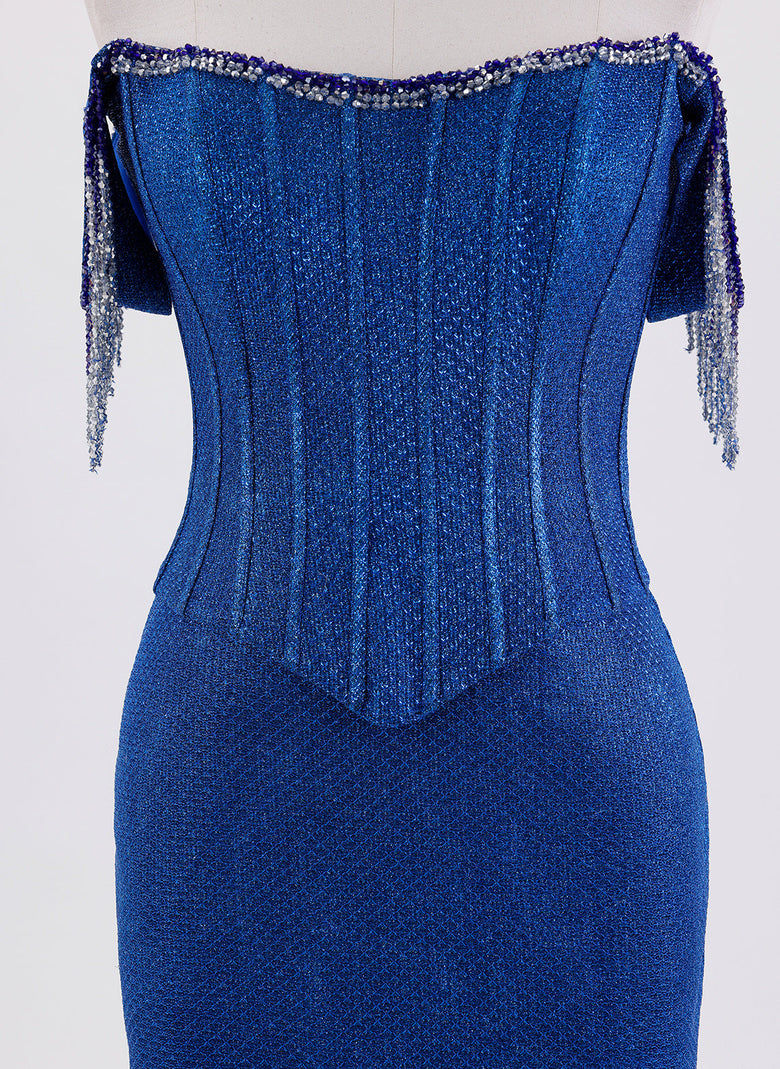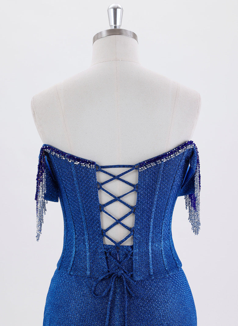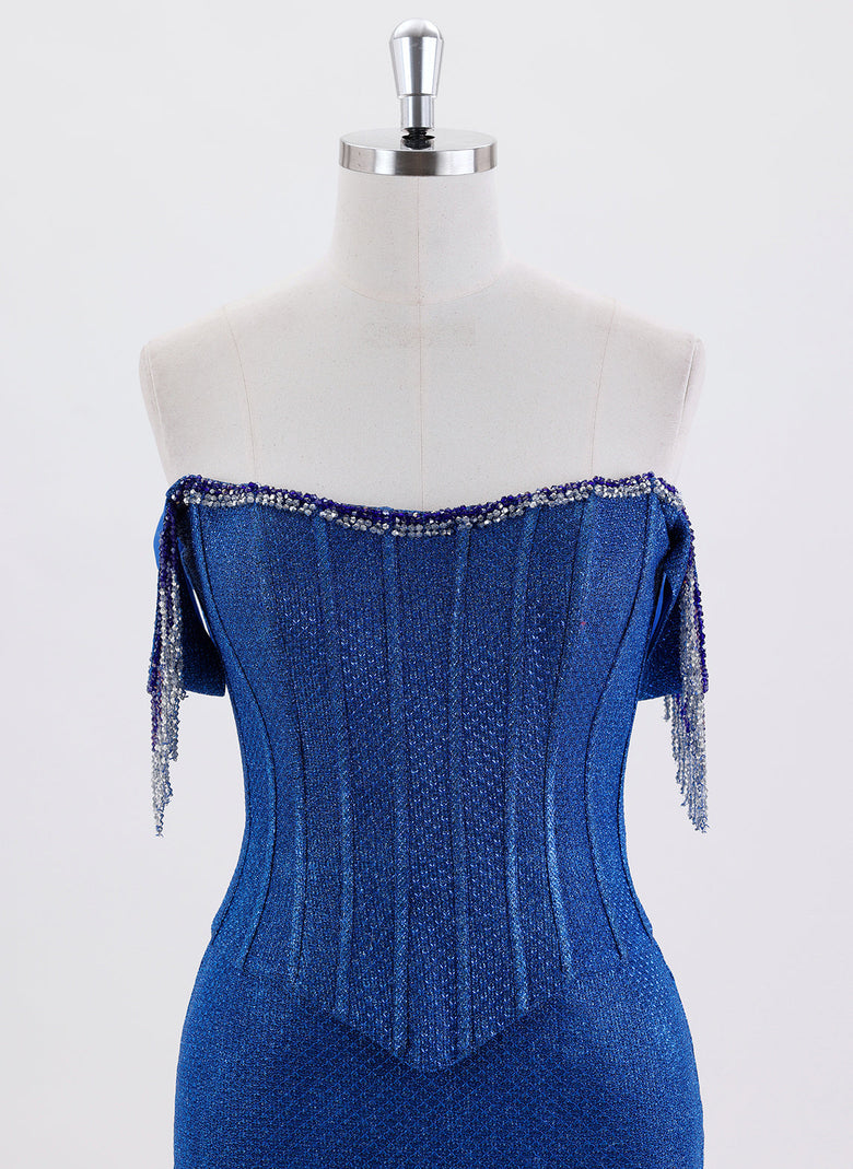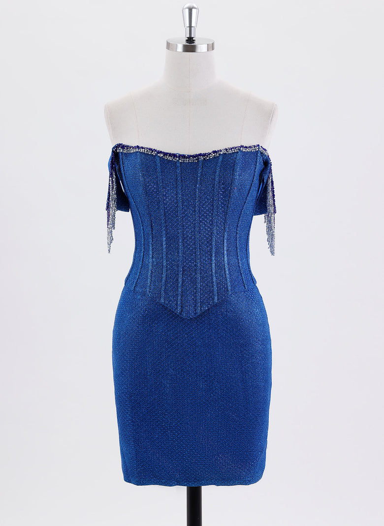 This short metallic homecoming dress features a sleek sheath silhouette that flatters the figure with a column-like fit. The beaded corset bodice adds intricate detail and a touch of elegance, enhancing the dress's sophisticated appeal. Perfect for special occasions, its shimmering fabric and structured design ensure you stand out with refined style and confidence.