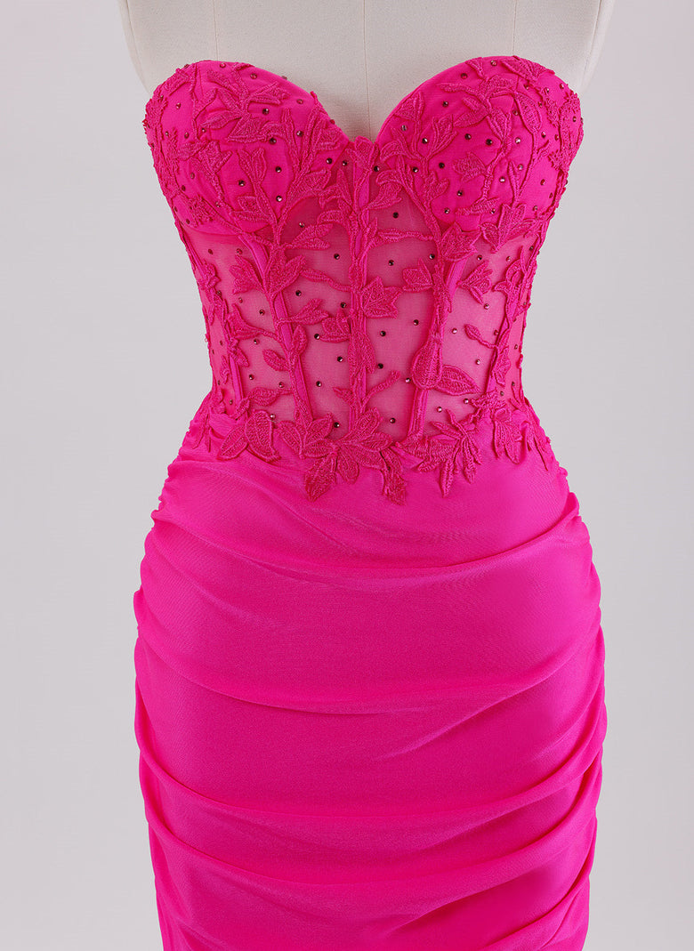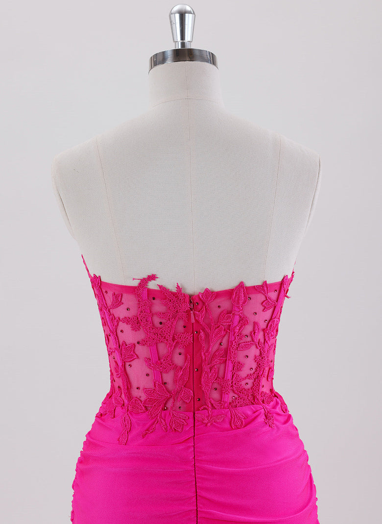 This sleeveless sheath dress features a flattering column silhouette crafted from soft jersey fabric, ensuring comfort and ease of movement. Delicate lace appliques add refined texture and elegance, making it an ideal choice for homecoming or special occasions. Its short length balances sophistication with youthful charm, perfect for making a confident statement.