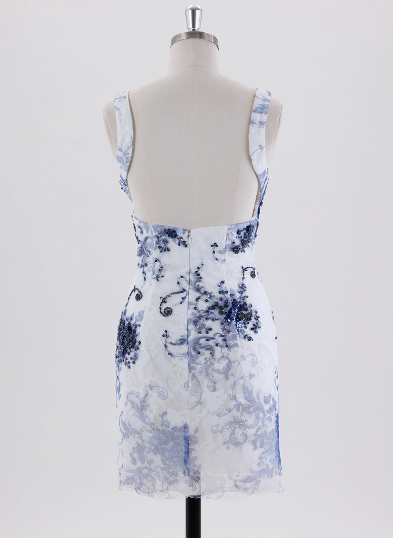 This sleeveless sheath dress combines delicate lace and sparkling sequins for an elegant homecoming look. Its short, column silhouette flatters the figure, while the open back adds a striking, modern detail. Designed for both style and comfort, this dress offers a refined balance of sophistication and allure, perfect for making a confident statement at any special occasion.