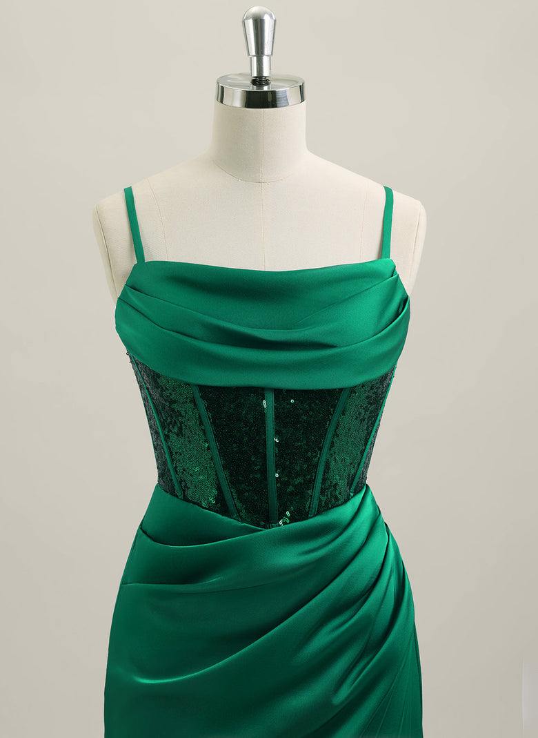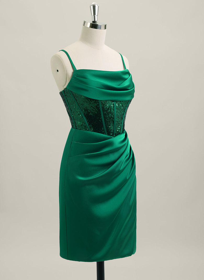 This sleeveless sheath dress features a flattering column silhouette crafted from matte satin, offering a smooth, elegant finish. Its short length and delicate ruffle detailing at the pleated square neckline add refined texture and charm. Perfect for homecoming or special occasions, this dress balances simplicity with sophisticated design for a polished, confident look.