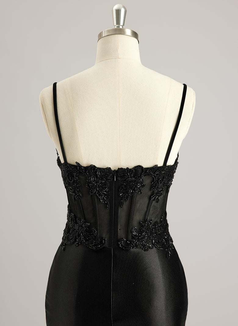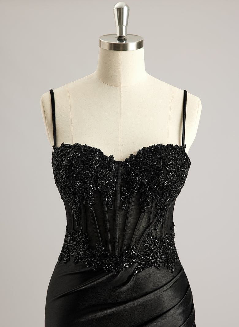 Spaghetti Straps Sweetheart Sexy Beautiful Back Corset Beading Sequins Jersey Sheath/Column Maxi Dress With Leg Slit