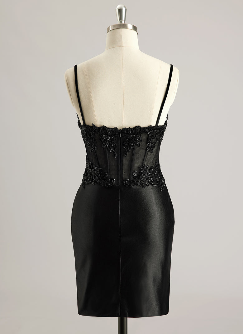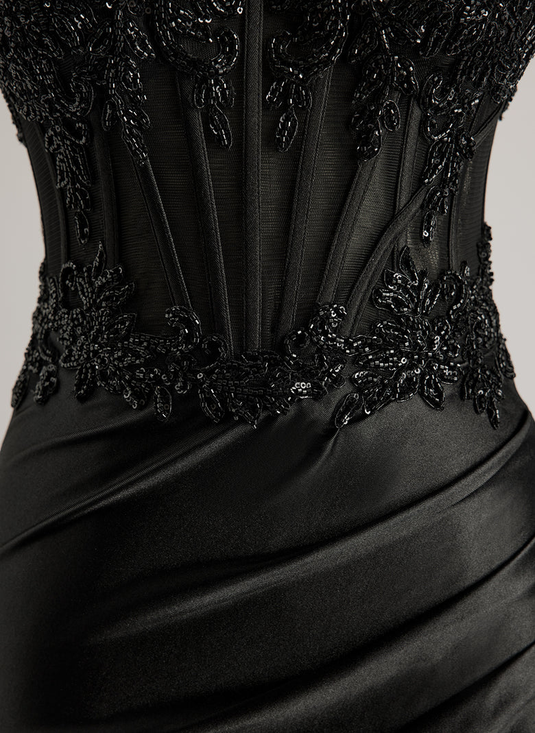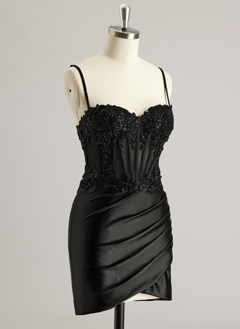 The short jersey material is stretchy and easy to move in. The sweetheart cut and sequin beading make it perfect for prom or a night out.