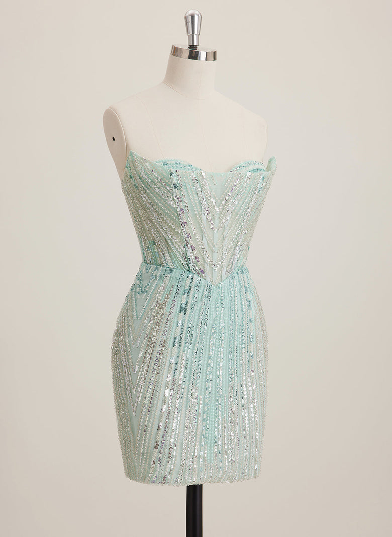Experience the glamour and shine with our Sheath/Column Sweetheart Sequin Mini Dress. The dress features hand-beaded sequins, highlighting your curves and adding a touch of elegance. The sweetheart neckline adds a romantic touch while the sheath/column silhouette creates a slimming effect. Perfect for any formal occasion.