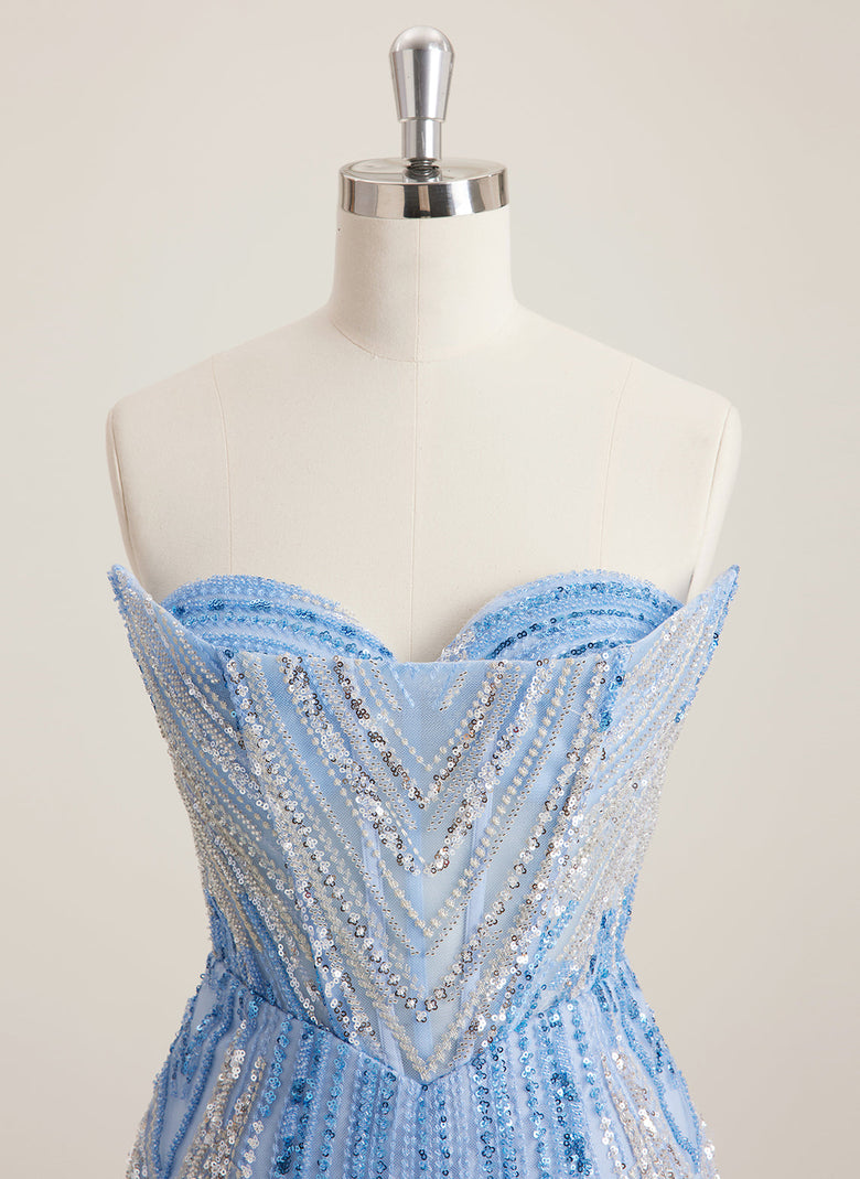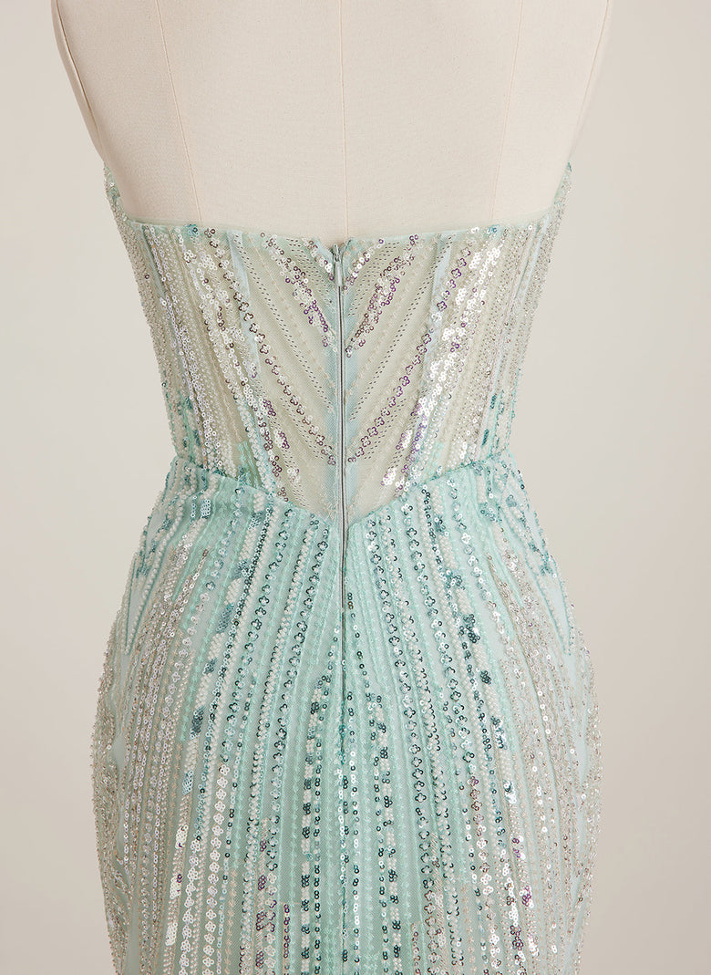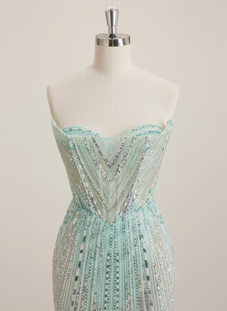 The mix of sequins and beading is gorgeous, and the sweetheart style adds a romantic vibe. Loved the sheath look—super flattering.