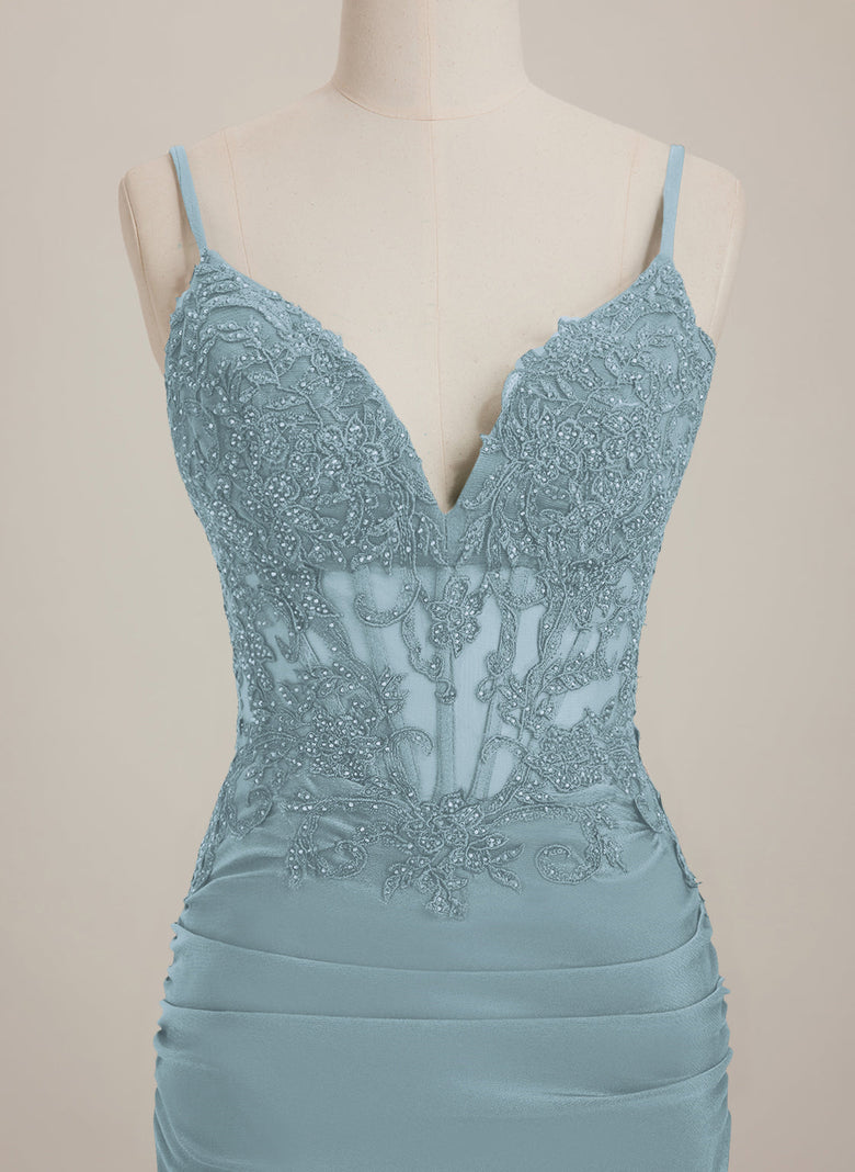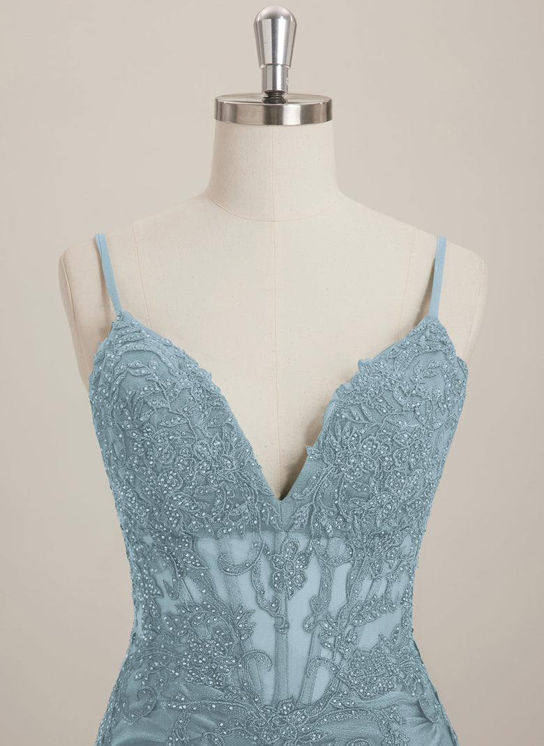 Trumpet/Mermaid V-Neck Floor-Length Lace Prom Dresses