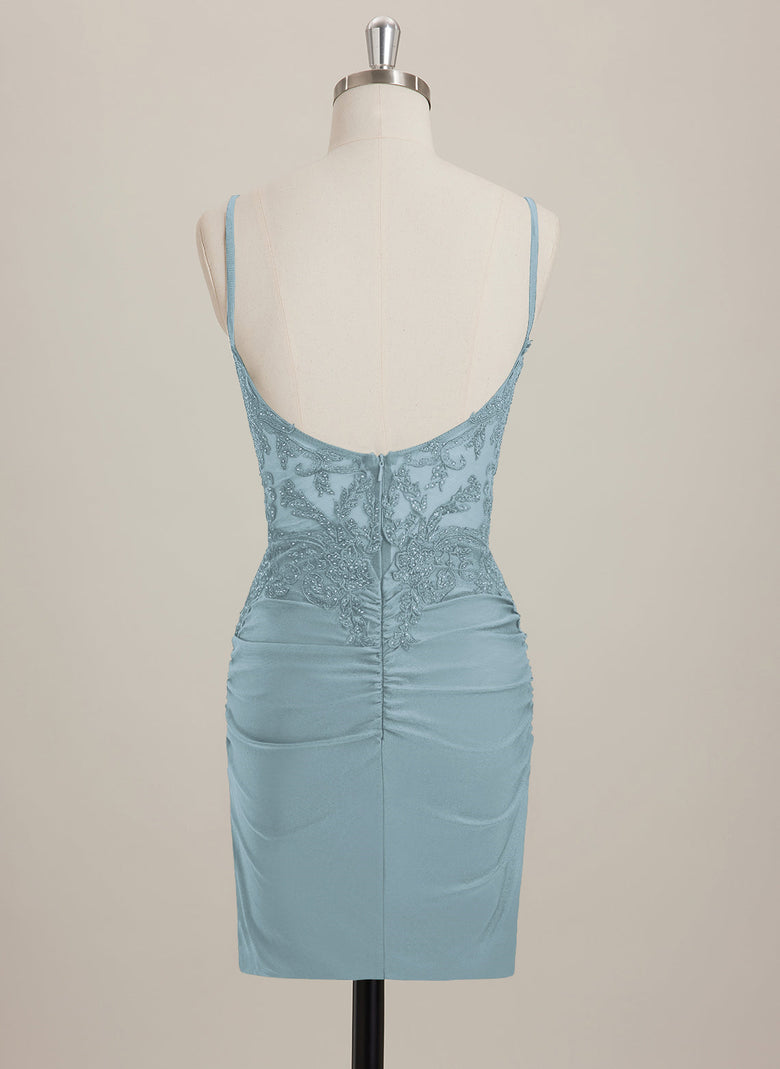 Sheath/Column V-Neck Short Jersey Mini Dress With Rhinestone