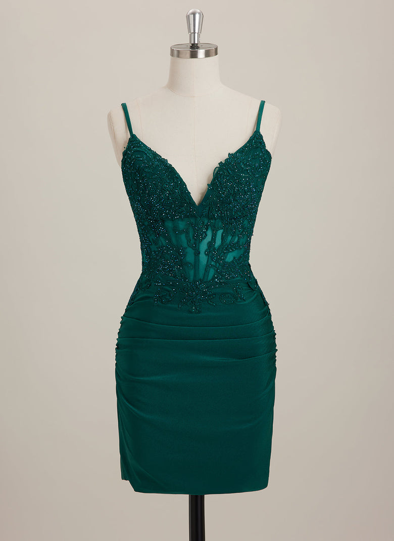 This Sheath/Column V-Neck Short Jersey Mini Dress is both chic and versatile. The stylish V-neckline and figure-flattering silhouette make it a must-have for any wardrobe. The addition of rhinestone embellishments adds a touch of glamour, perfect for any special occasion. Made with high-quality jersey fabric, this dress offers both comfort and style.