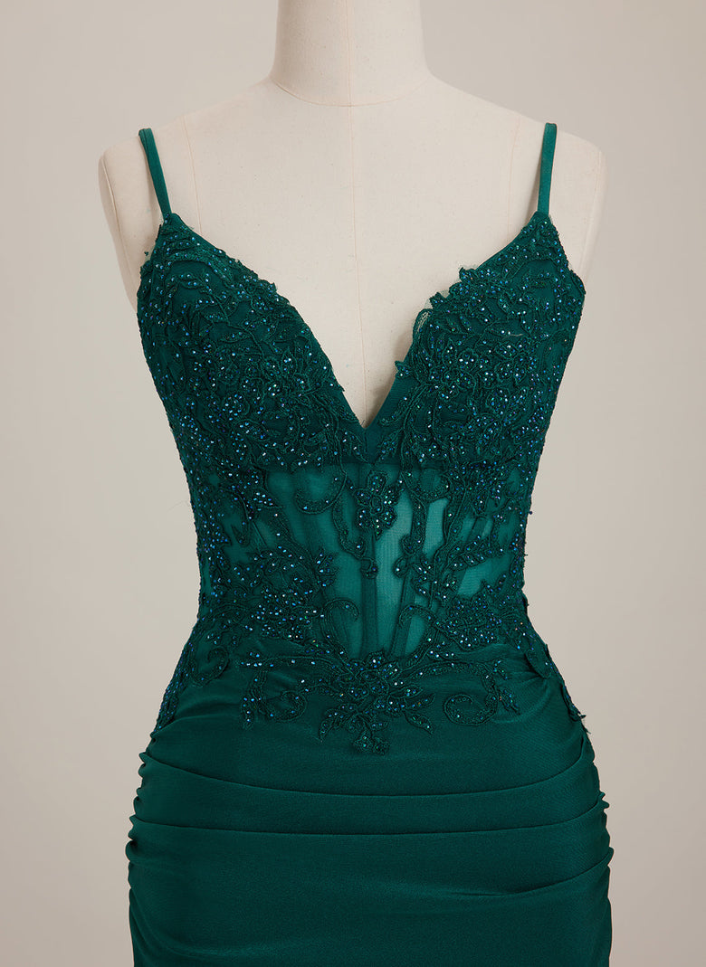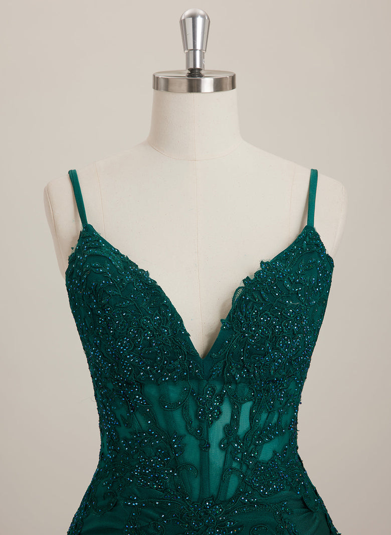 Trumpet/Mermaid V-Neck Floor-Length Lace Prom Dresses