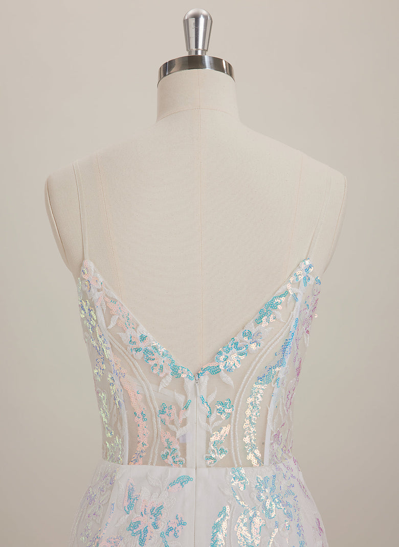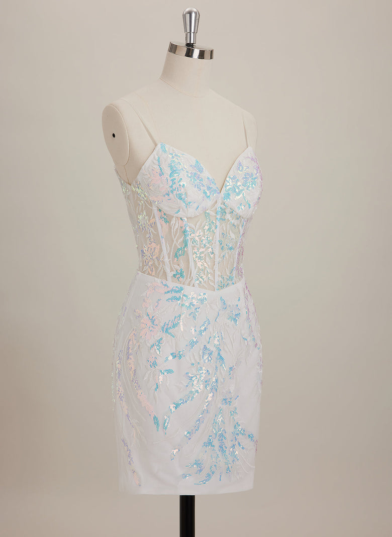 Expertly crafted with delicate lace and adorned with sequins, this Sheath/Column V-Neck Short Lace Mini Dress is perfect for your next special occasion. The flattering V-neckline adds a touch of elegance, while the sheath/column silhouette accentuates your curves. Step out in style and be the center of attention with this stunning dress.