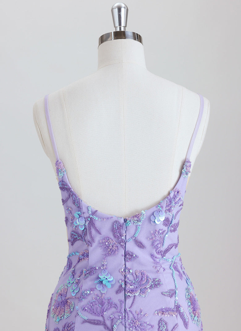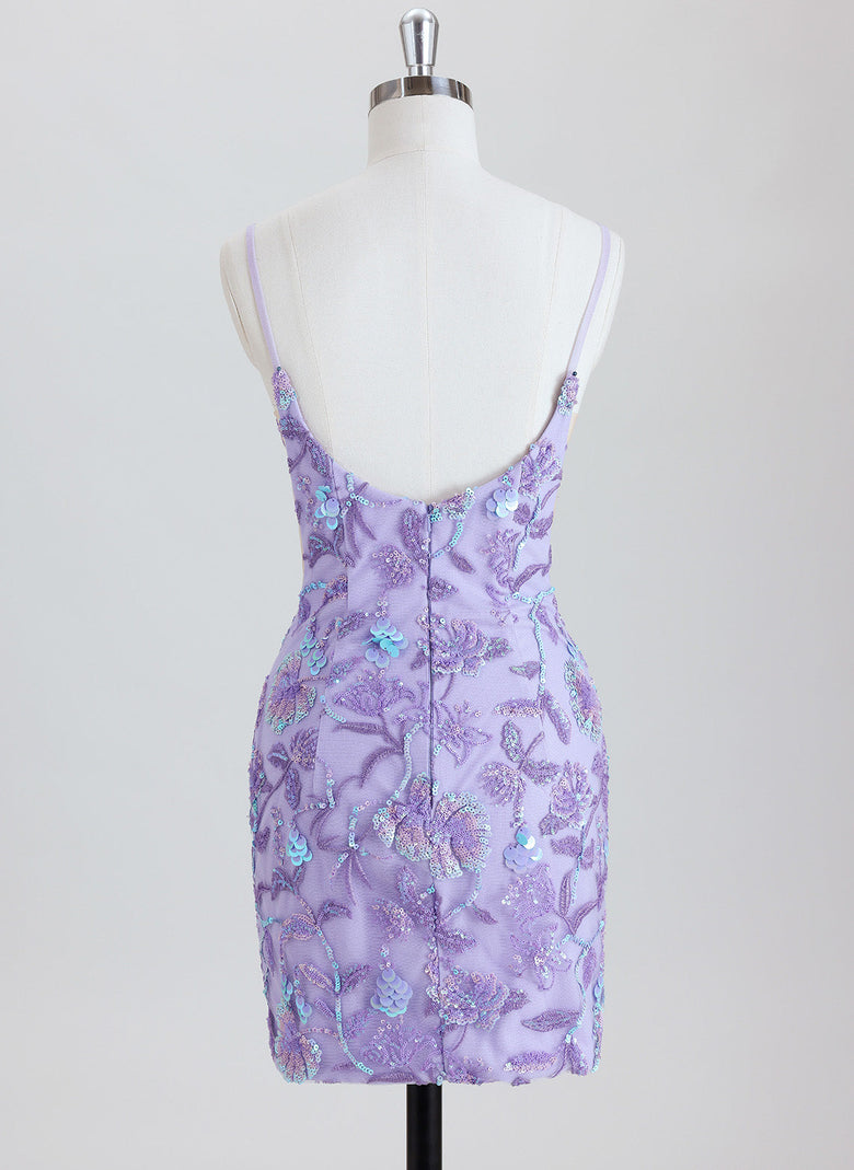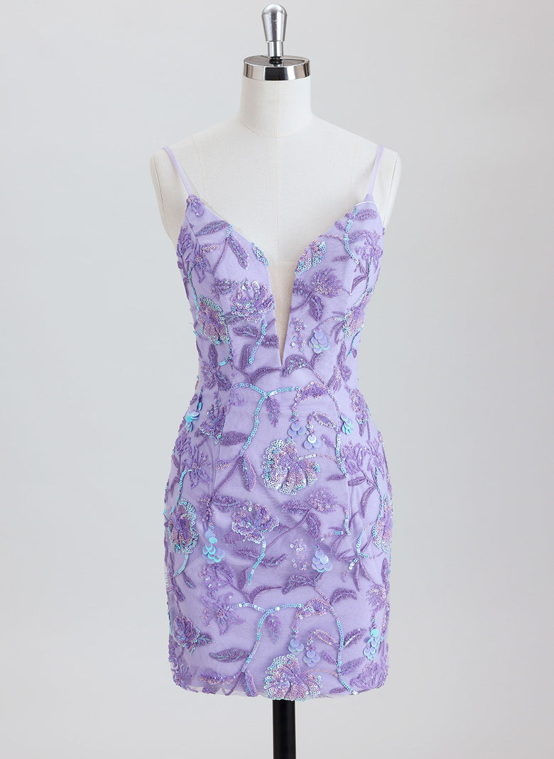 This sheath-style homecoming dress features a flattering V-neckline and a short, column silhouette that enhances your natural shape. Crafted from delicate lace and adorned with shimmering sequins, it offers a sophisticated blend of texture and sparkle. Perfect for making a refined statement at any special event, this dress combines elegance with subtle glamour.