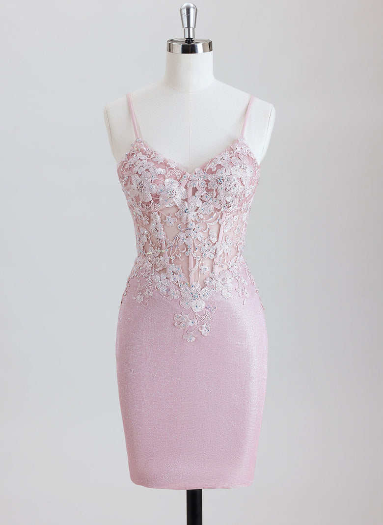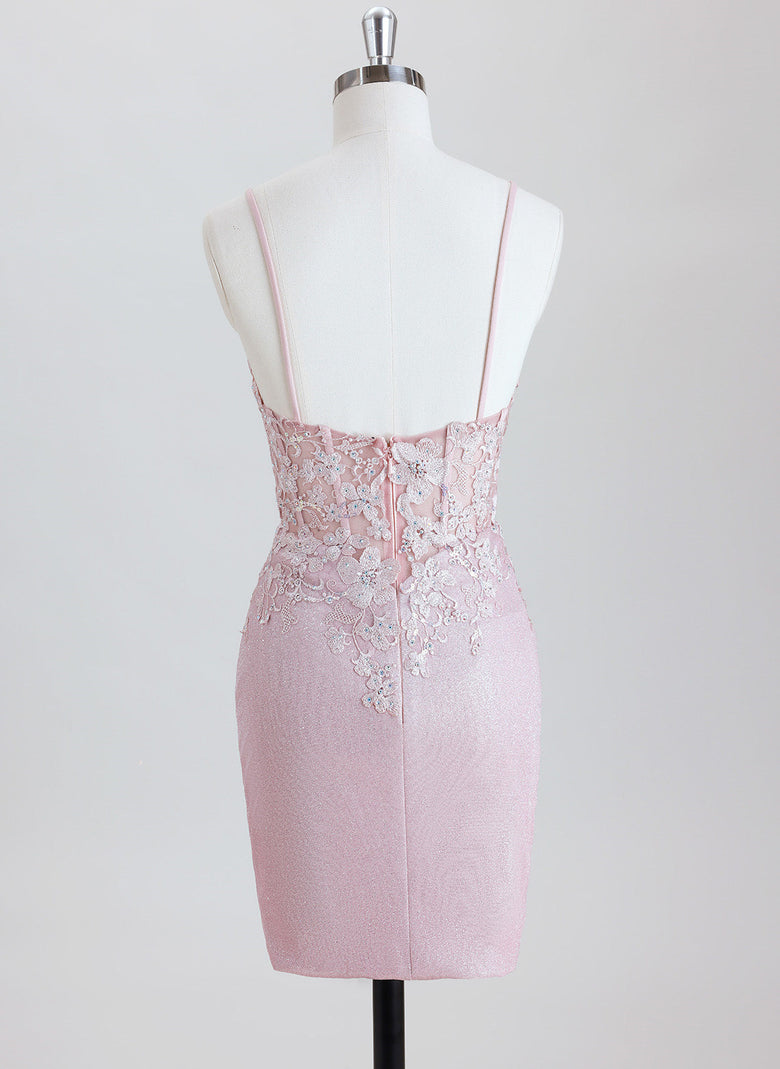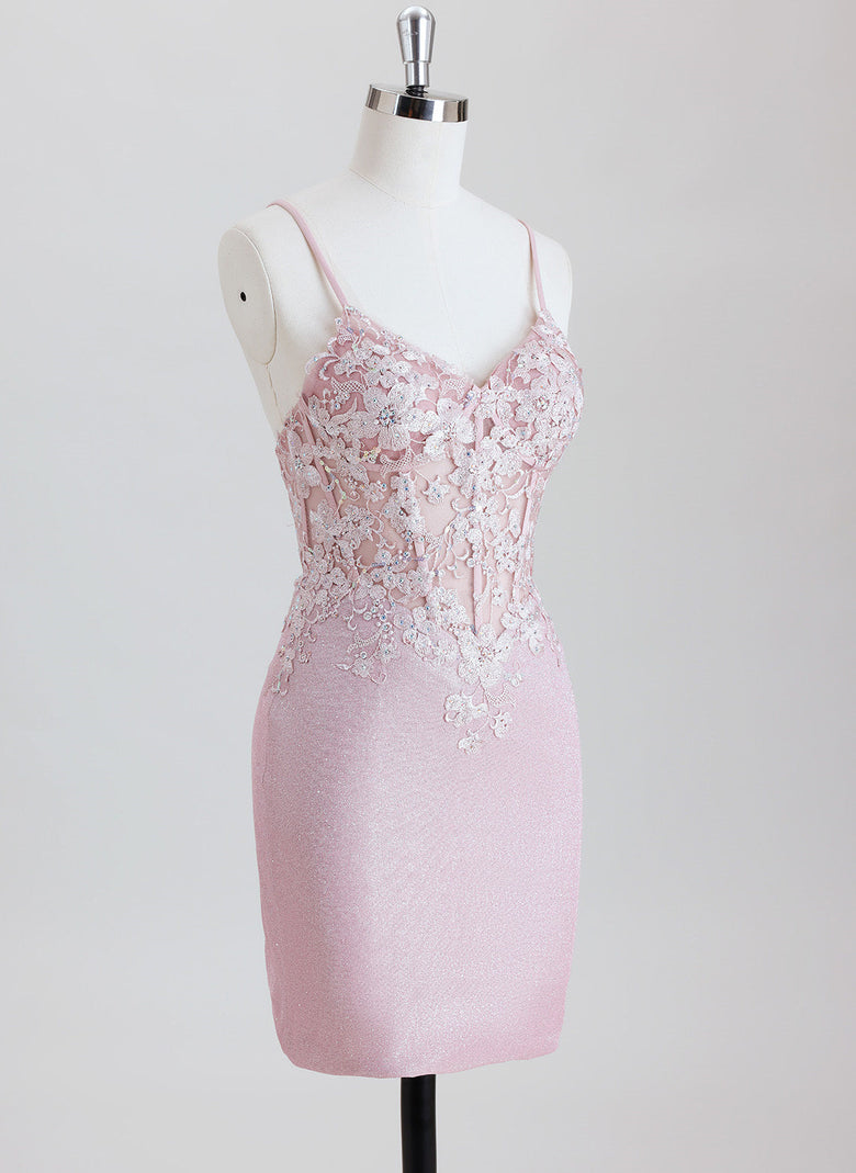 This sheath dress features a flattering V-neckline and delicate spaghetti straps, designed to enhance your silhouette with elegance. Its short length and metallic fabric create a striking, modern look, while sequins add a touch of shimmering sophistication—perfect for making a memorable impression at homecoming or any special event. Crafted to combine style and comfort, this dress ensures you stand out with confidence and grace.