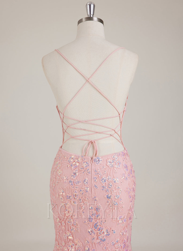 Expertly crafted and adorned with sequins, this Sleeveless V-Neck Trumpet/Mermaid Maxi Dress exudes elegance. The tulle fabric adds a touch of whimsical charm, while the v-neckline flatters the figure. Perfect for formal occasions, this dress is sure to make a statement.