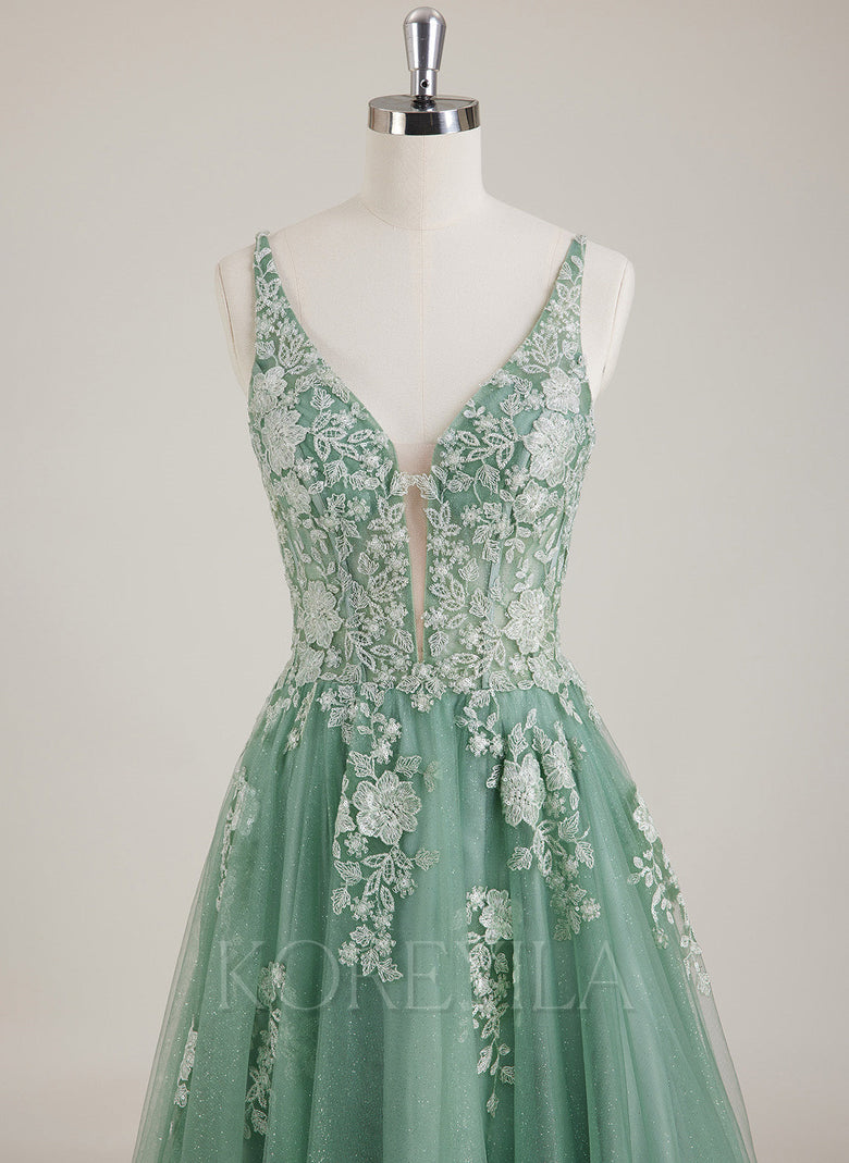 Sleeveless V-Neck Sequins Tulle Ball-Gown/Princess Maxi Dress