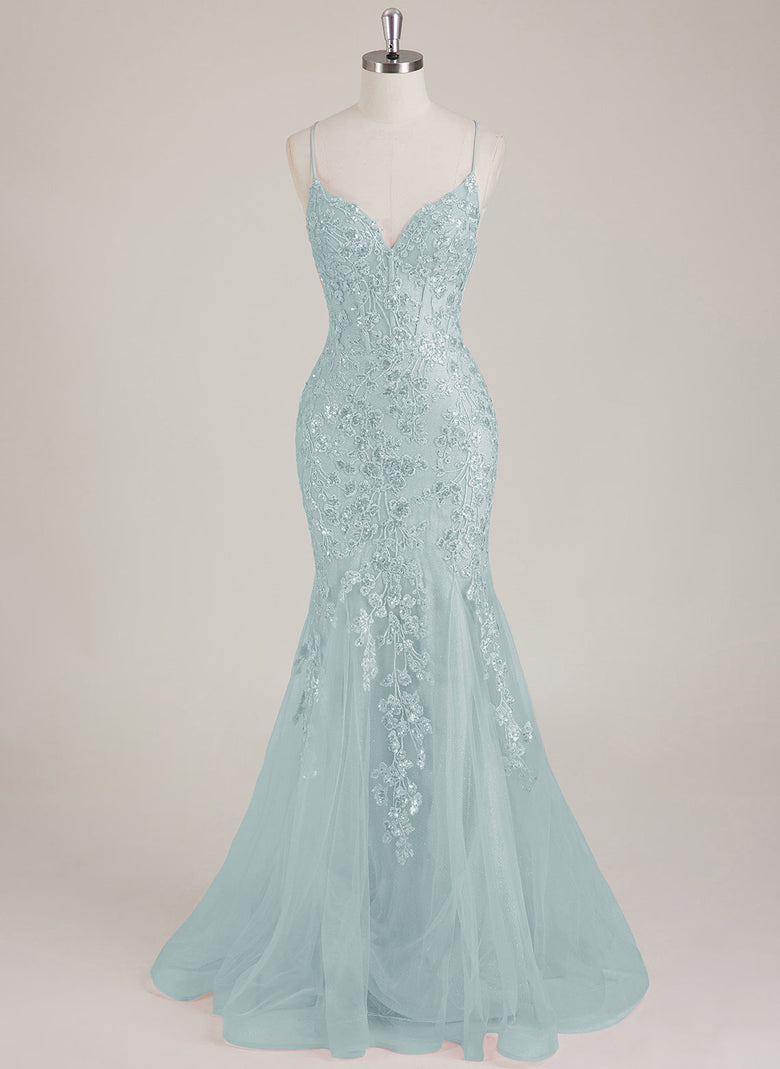 Trumpet/Mermaid V-Neck Floor-Length Lace Prom Dresses