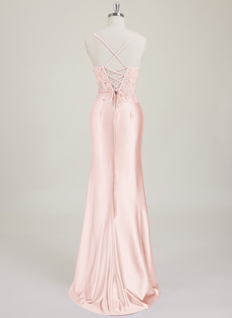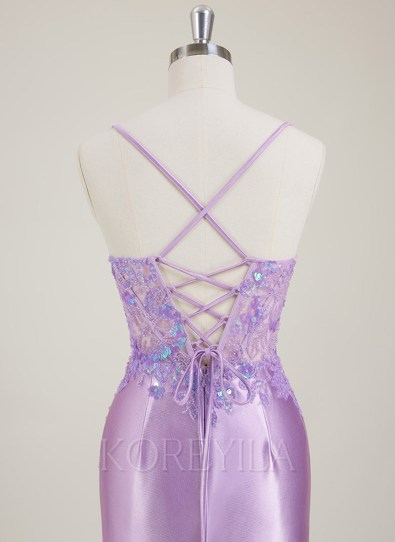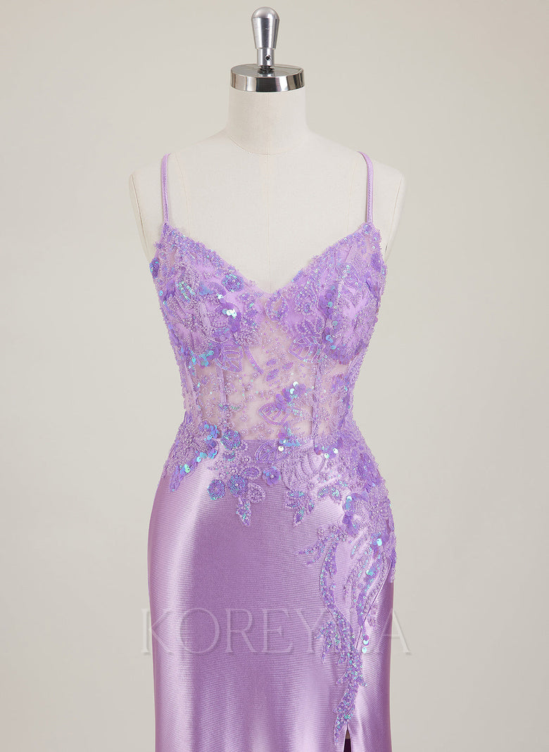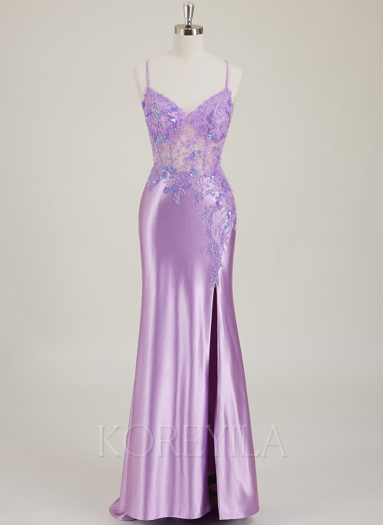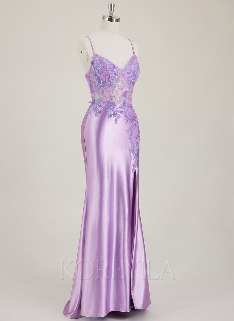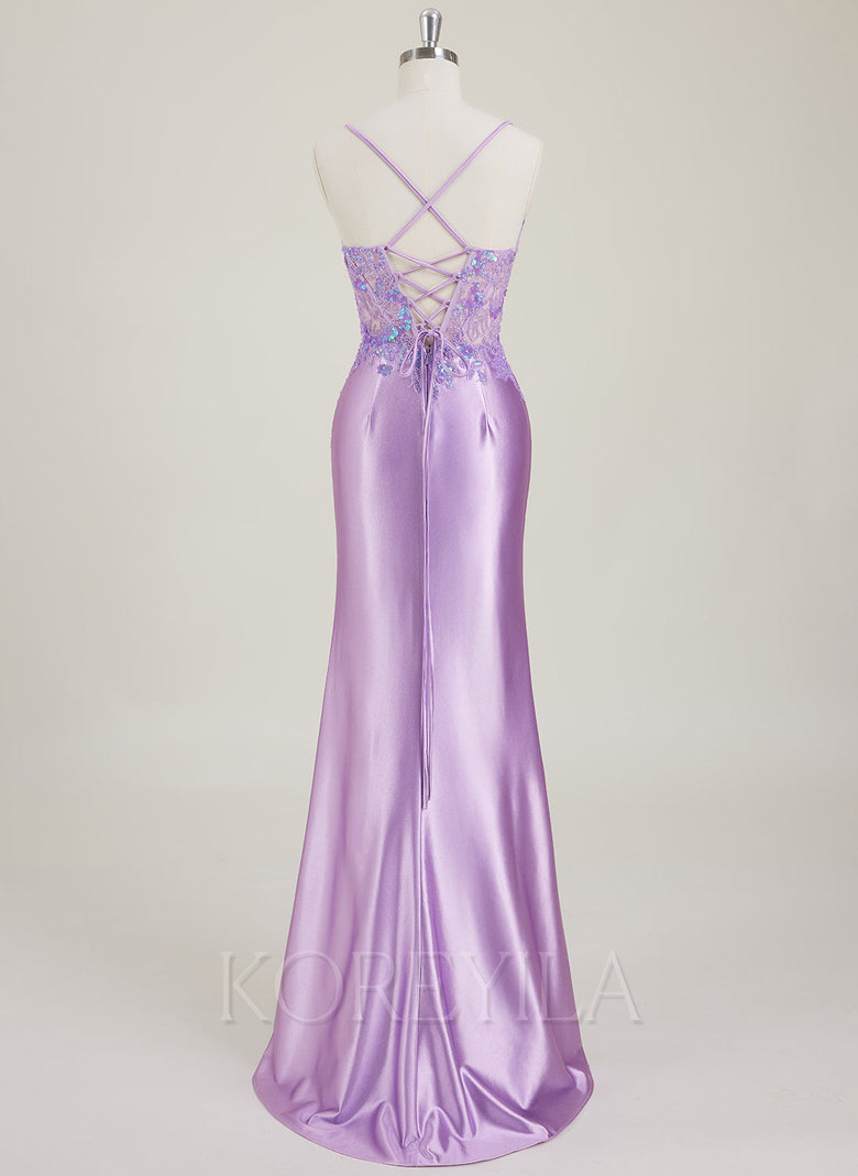 Expertly crafted in lightweight jersey fabric, this maxi dress features delicate spaghetti straps and a flattering V-neckline. The intricate sequin detailing adds a touch of glamour, while the trumpet/mermaid silhouette flows beautifully to accentuate your figure. Plus, the leg slit adds just the right amount of sultry appeal. Perfect for special occasions.