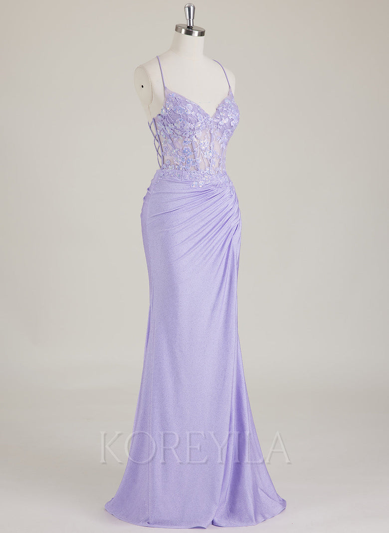 Elevate your evening look with our Spaghetti Straps V-Neck Maxi Dress! The sexy V-neck, beautiful back design, and sparkling sequins add a touch of glamour to any event. The pleated appliques and leg slit add a sophisticated twist to the classic mermaid silhouette. Get ready to turn heads with this stunning dress.