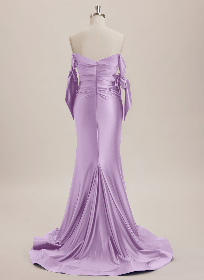 Trumpet/Mermaid Off the Shoulder Sweep Train Jersey Maxi Dresses With Pleated Bow