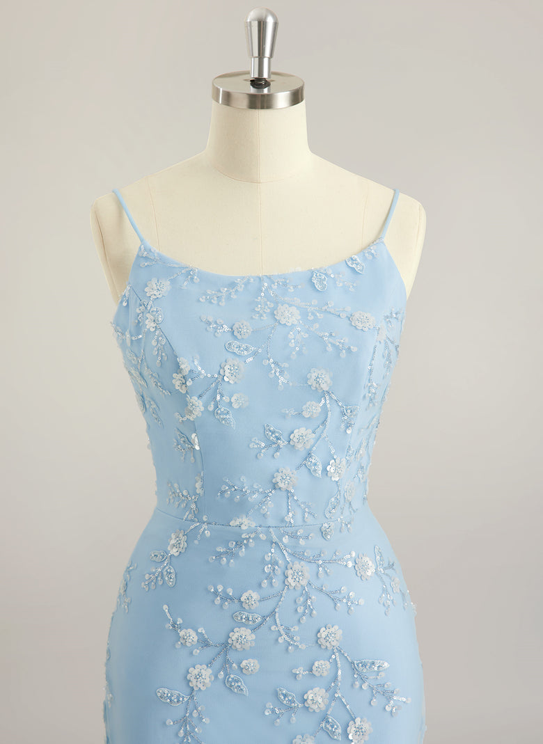Spaghetti Straps Scoop Sparkle & Shine Sweet & Flow Beautiful Back Sequins Tulle Trumpet/Mermaid Maxi Dress With No Leg Slit