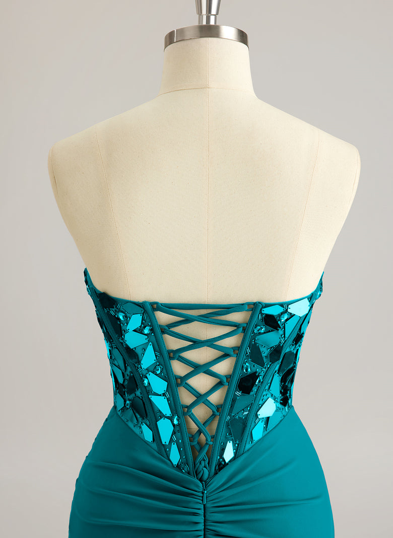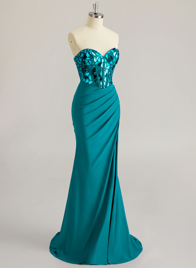 Sleeveless Sweetheart Vintage Beading Sequins Jersey Trumpet/Mermaid Maxi Dress With Leg Slit